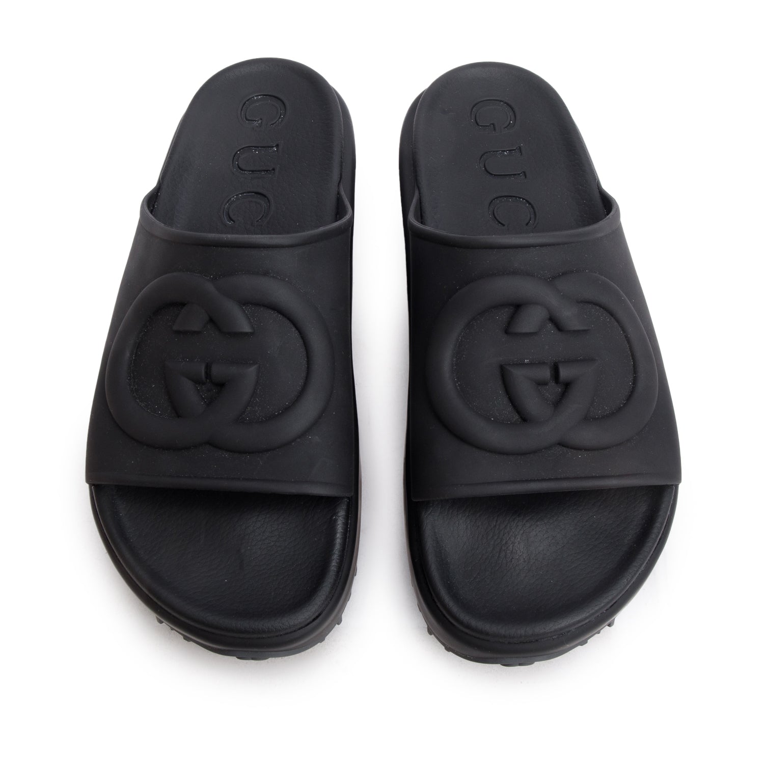Black Interlocking G Logo Rubber Platform Slides, Women's Size 42 w/ Box
