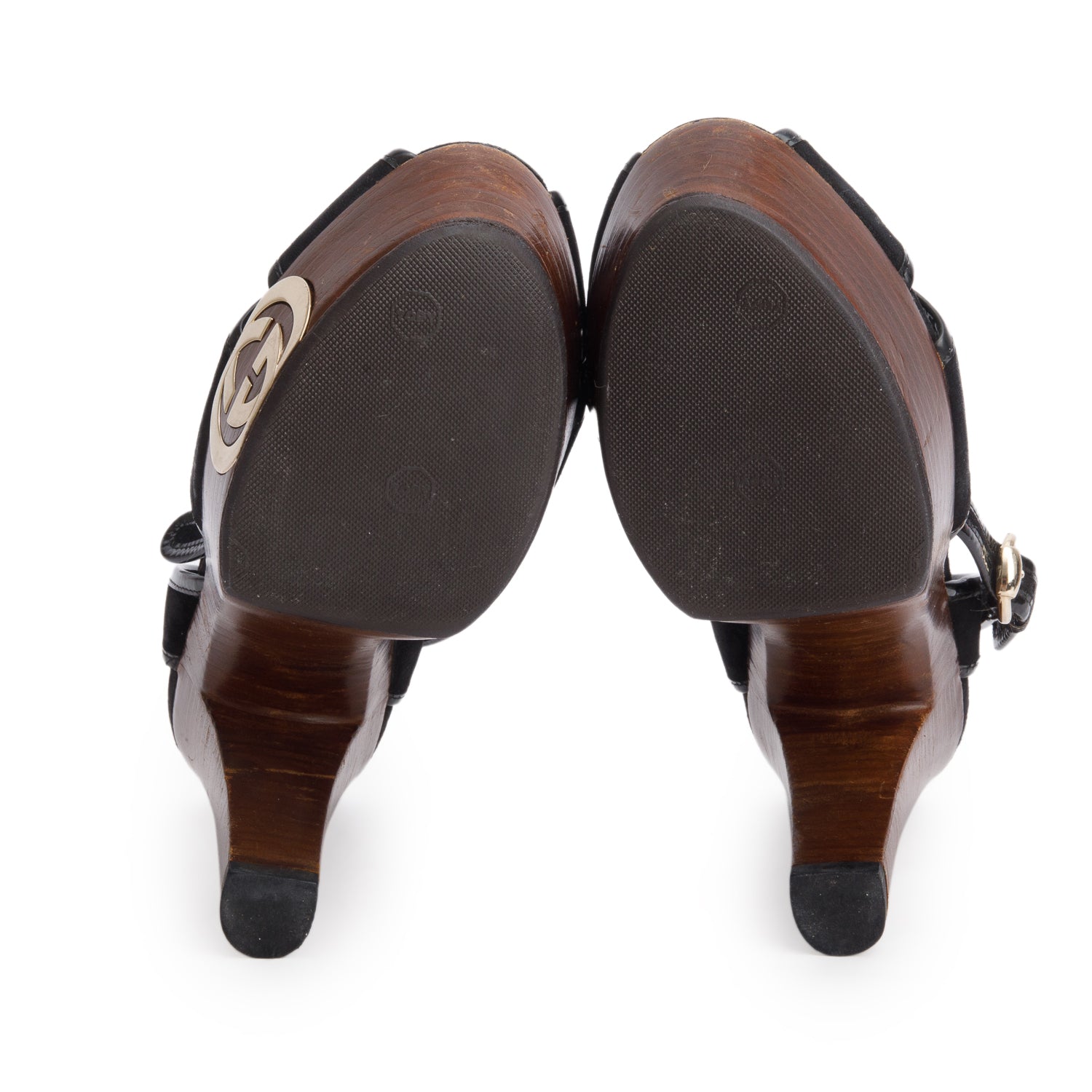 Condition: Very Good; slight scratches at hardware and wear at insoles; some scratches at wood heels.