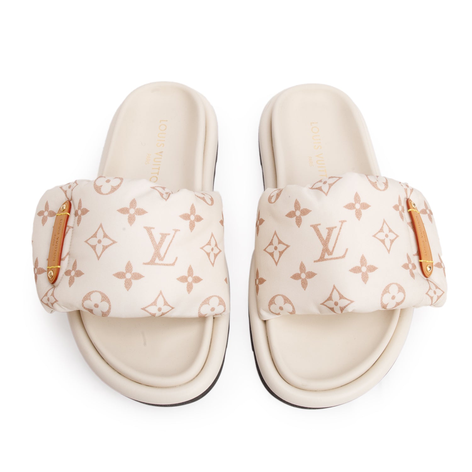2023 Creme Monogram Pool Pillow Flat Comfort Mule, Size 38 w/ Box