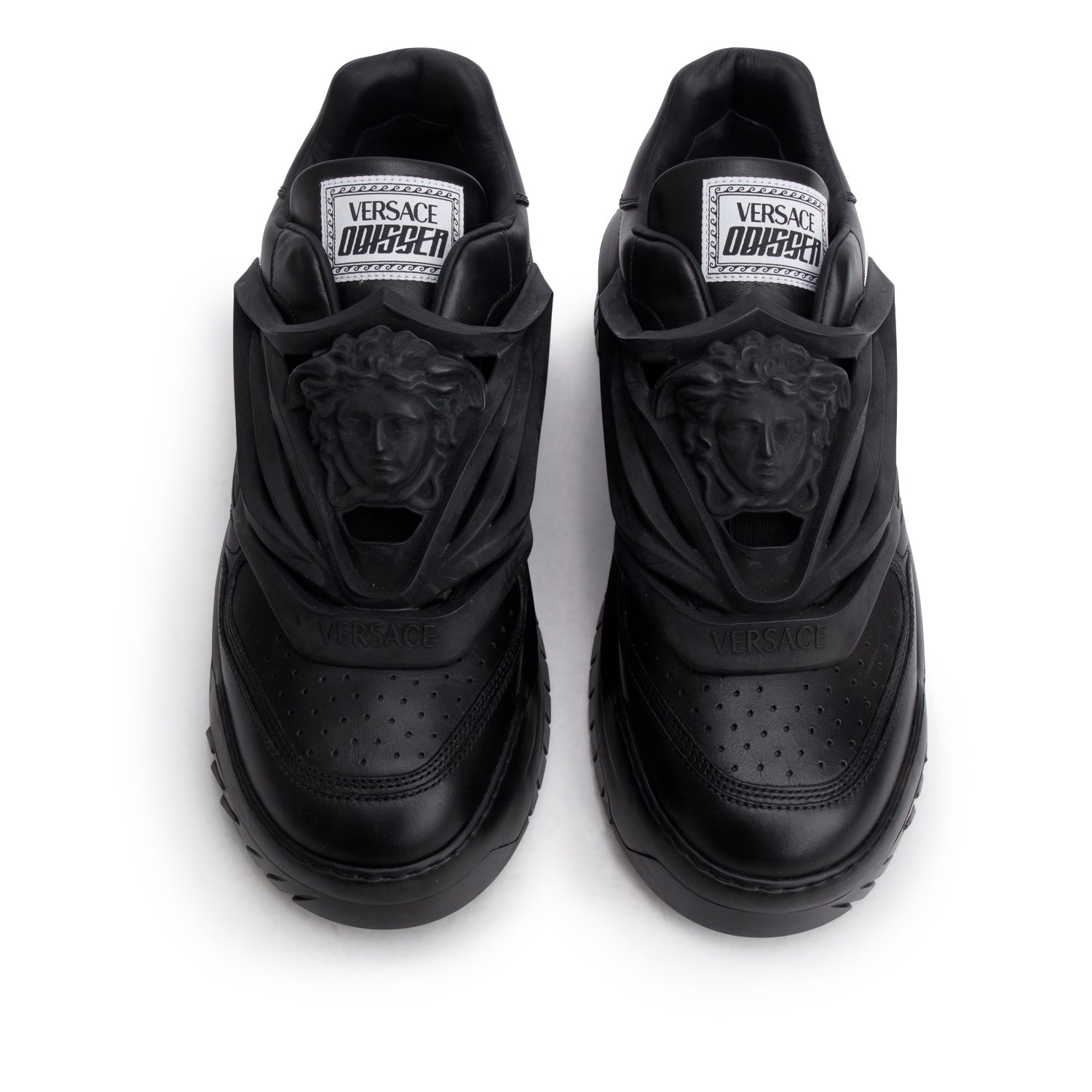 Black Calf Leather Odissea Medusa Insignia Sneakers, Men's Size 46.5