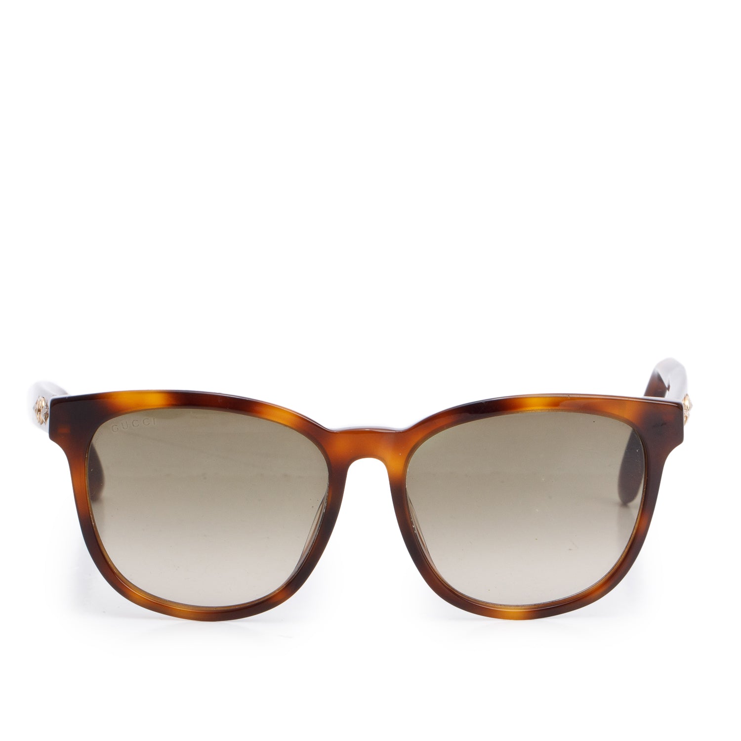 GG0232SK Havana Acetate Interlocking G Star Accent Square Sunglasses w/ Case