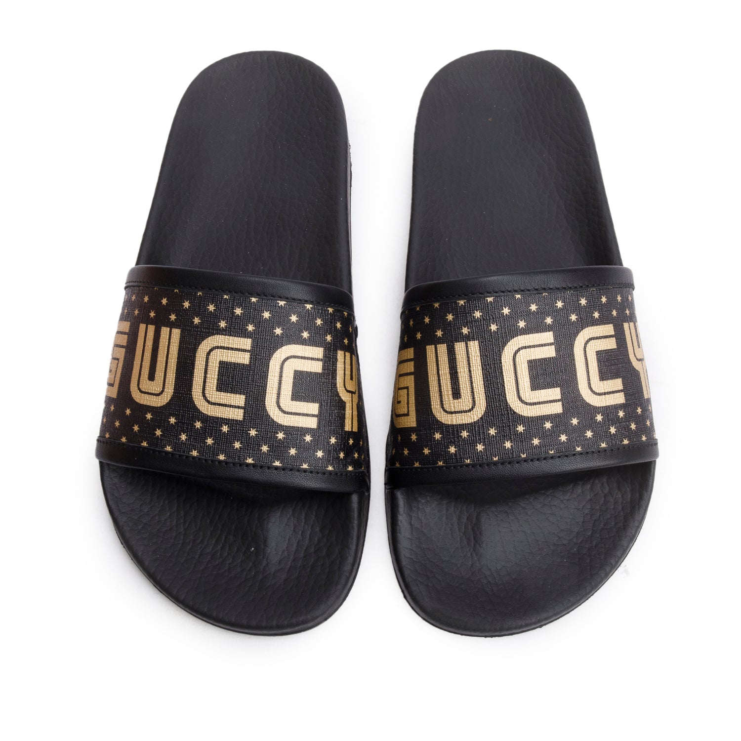 x Sega Supreme Black Rubber Guccy Star Slides, Size 5 w/ Box