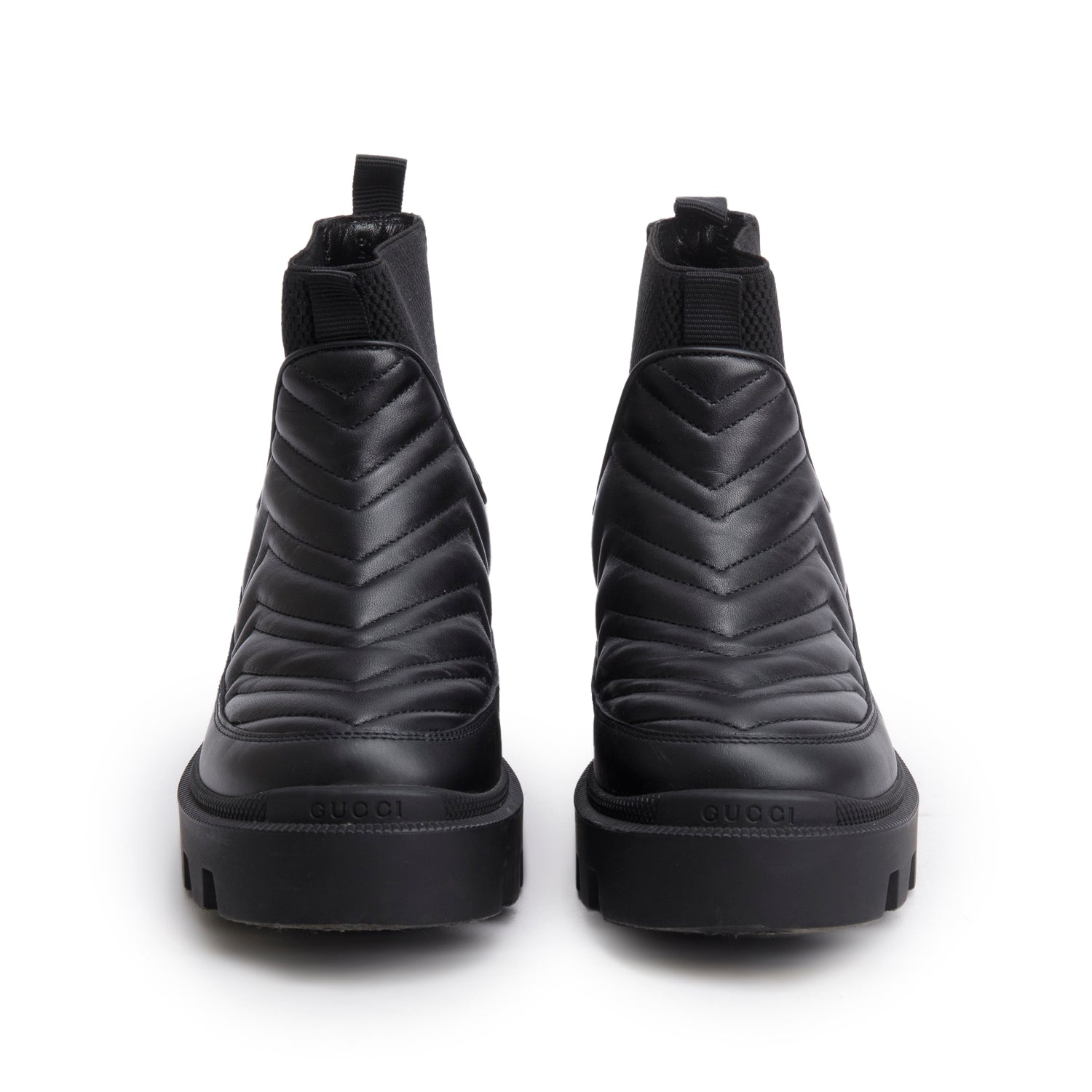 Black Nappa Matelasse Leather Frances Chelsea Ankle Boots, Size 34.5 w/ Box