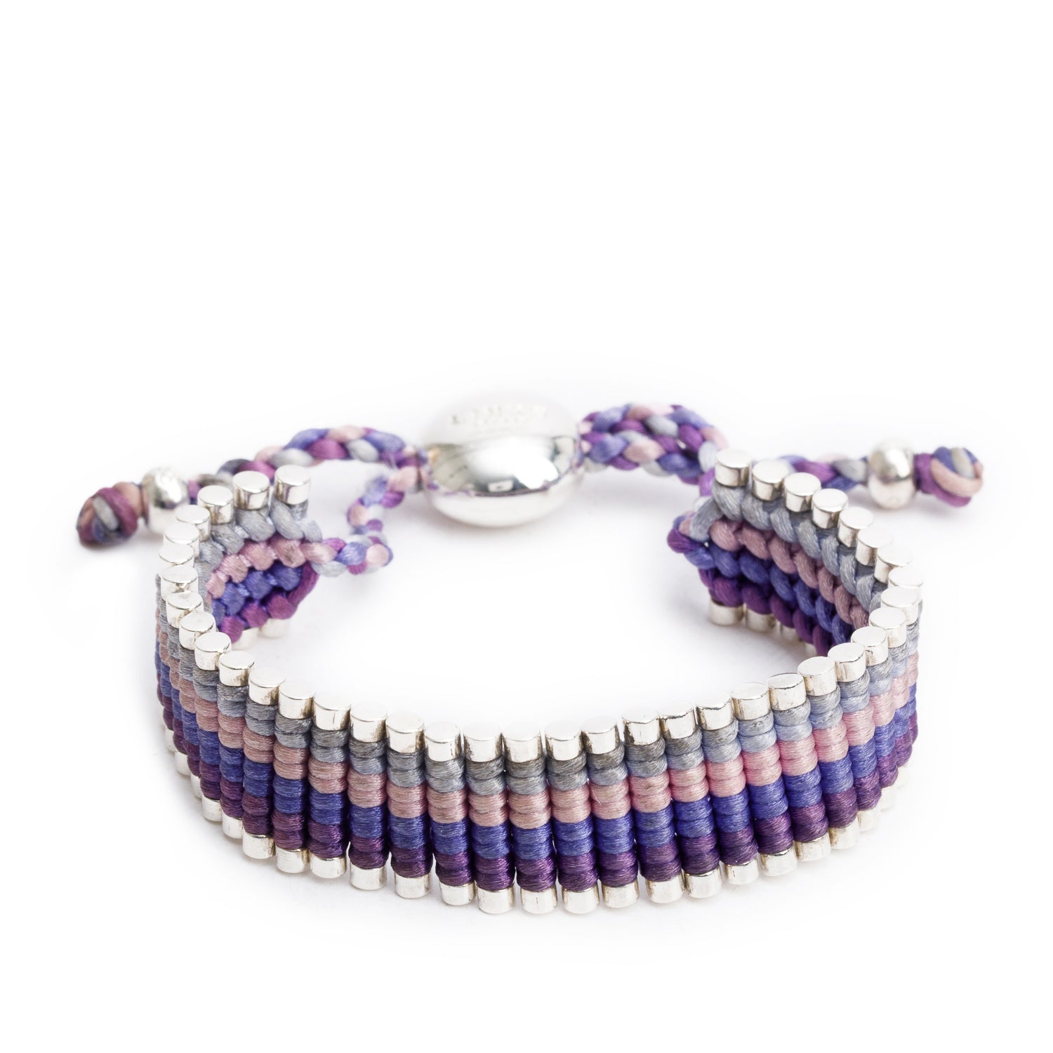 Sterling Silver Purple & Pink Cord Friendship Bracelet
