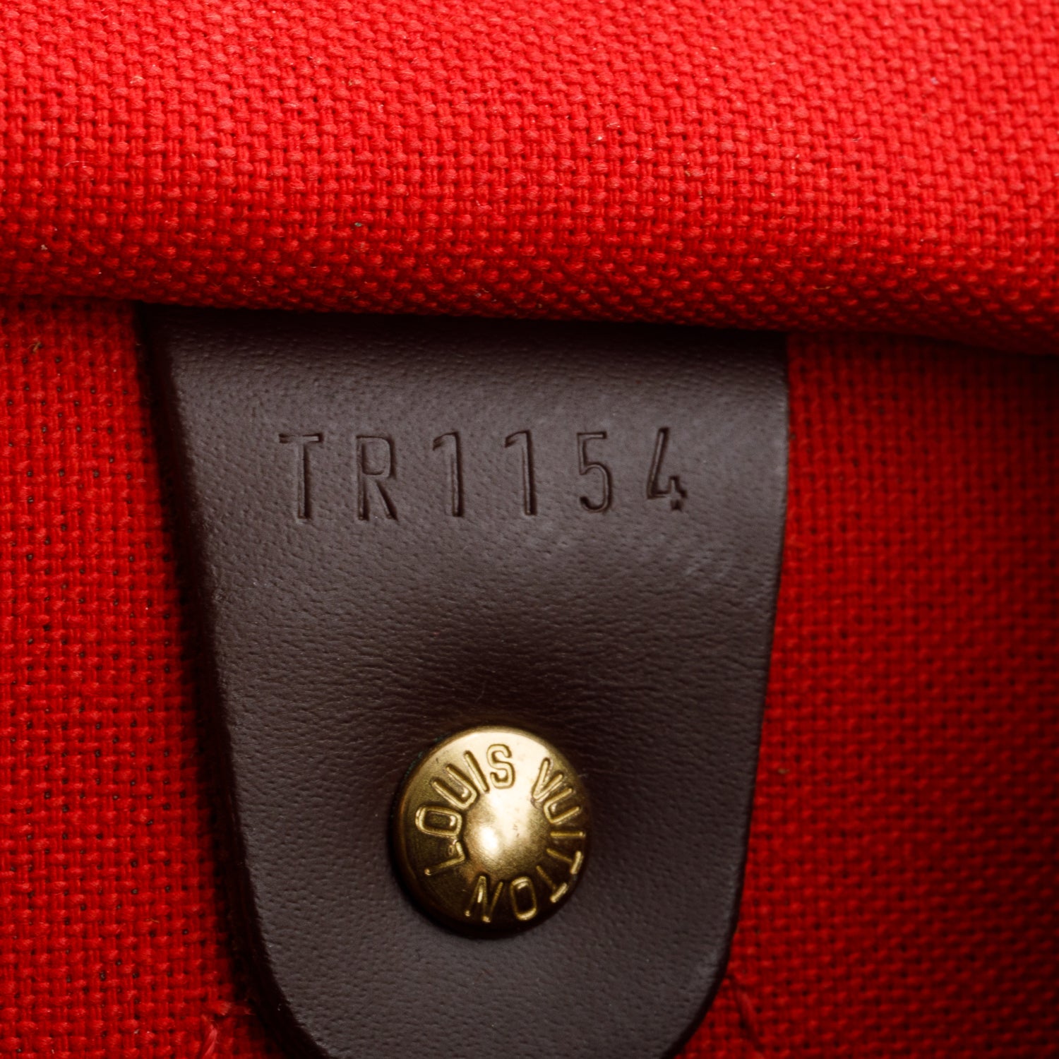 Condition: Very Good; slight creasing at leather tabs and handles; minor marks at interior.