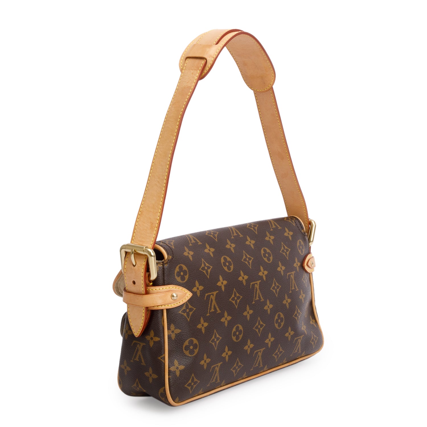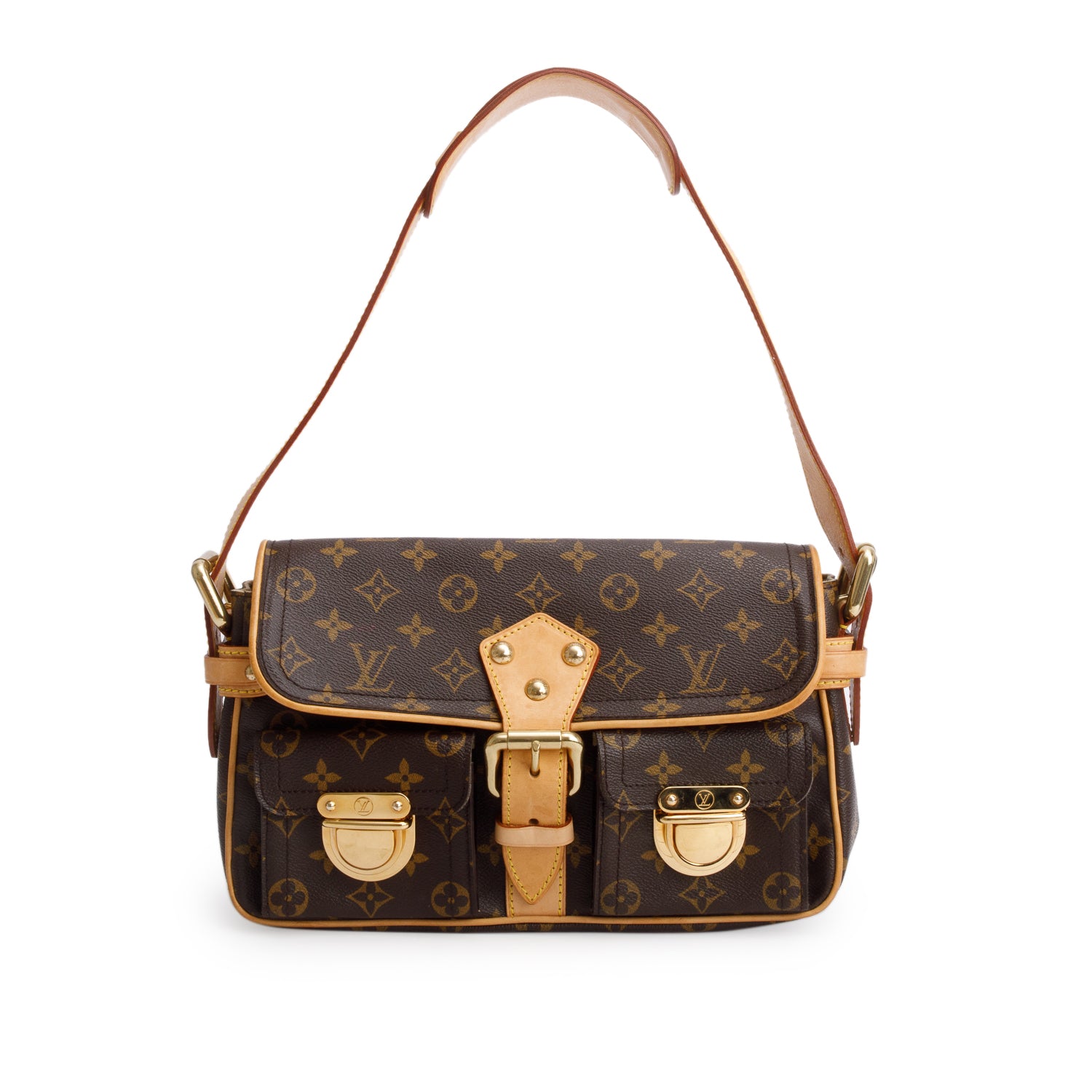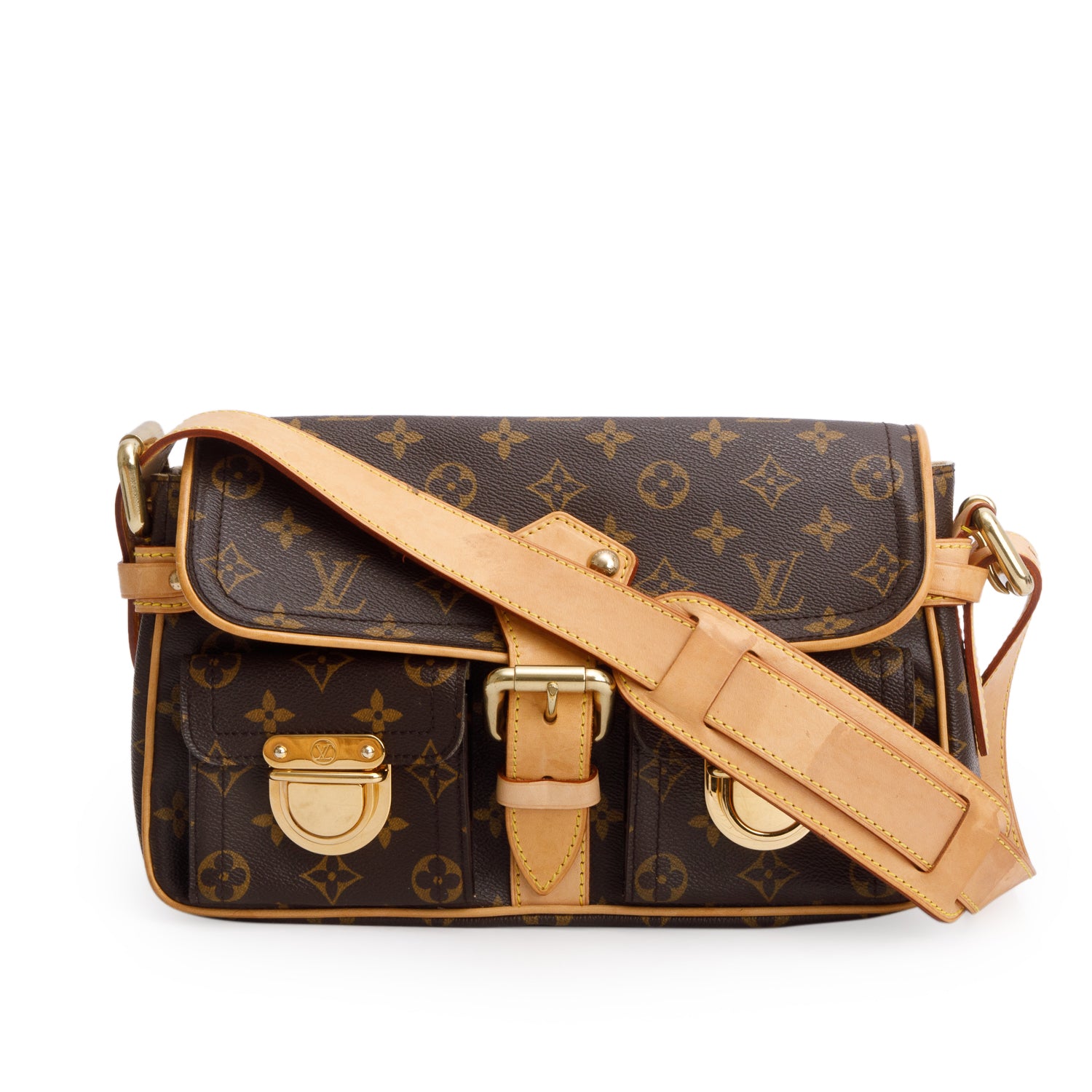 Condition: Very Good; some creasing and marks at exterior vachetta and strap; slight scuffing at exterior corners and scratches at hardware; slight loss of shape.