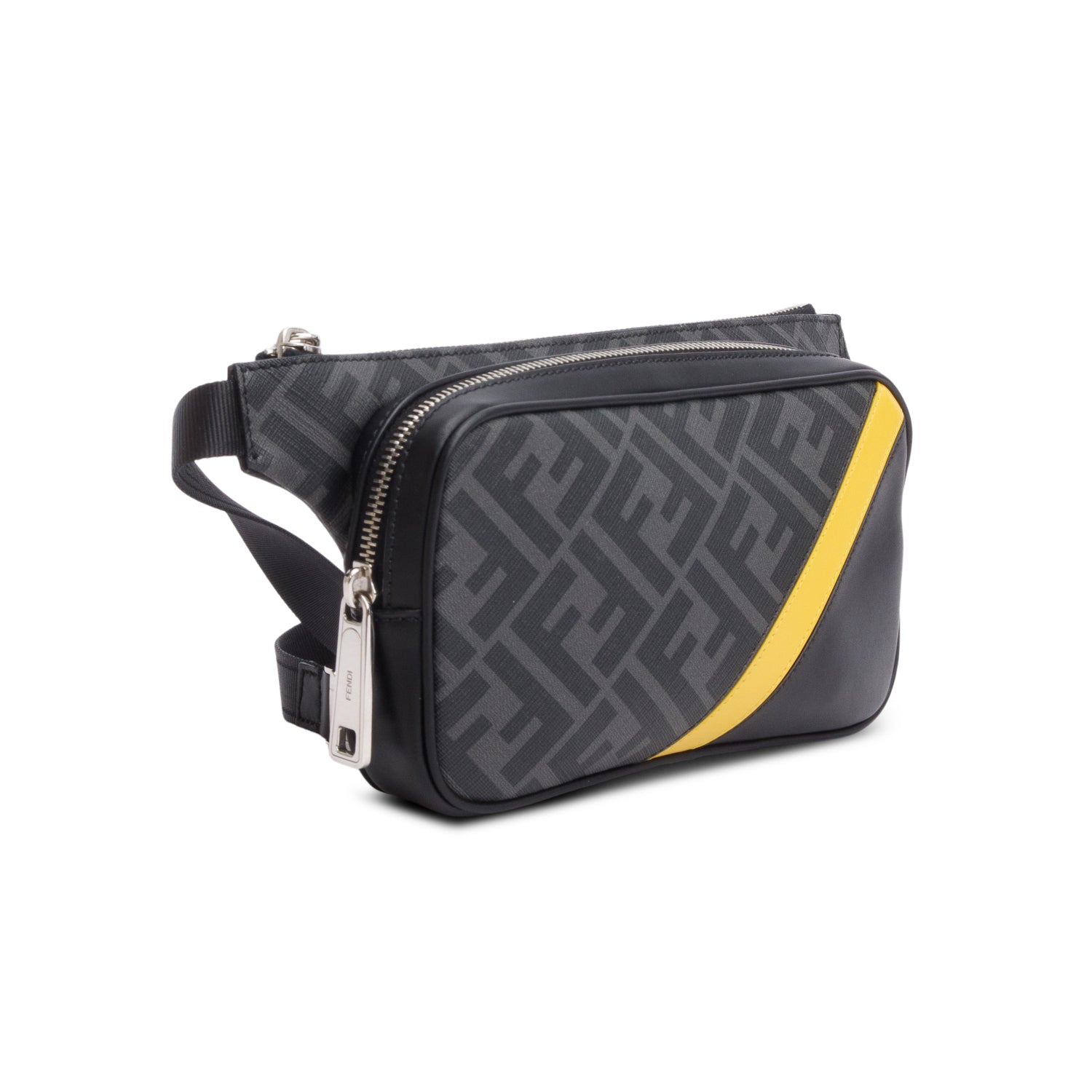 2023 Grey Glazed Fabric Vitello Liberty FF Diagonal Belt Bag w/ Box & Receipt