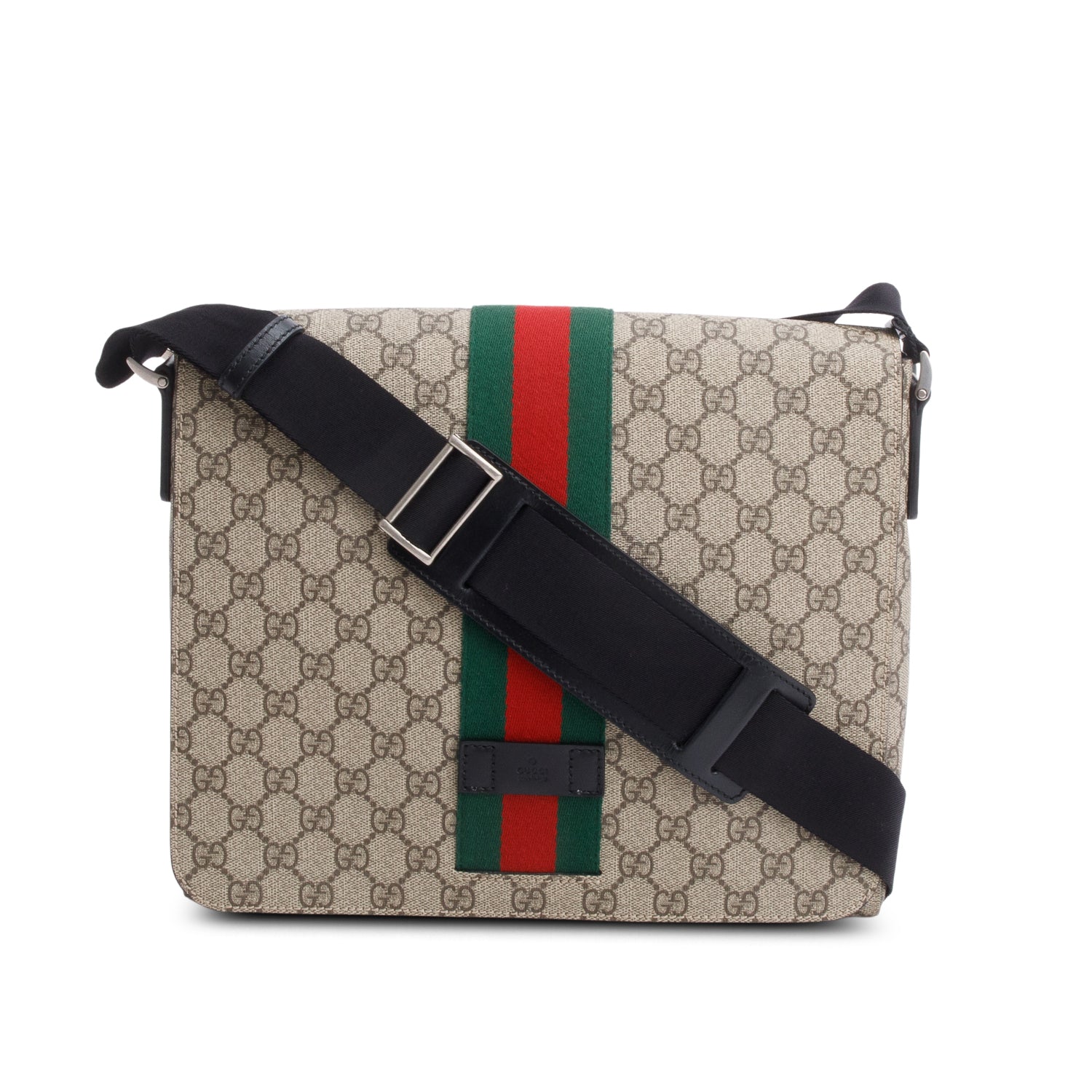 GG Supreme Monogram Web Flap Messenger Bag w/ Receipt