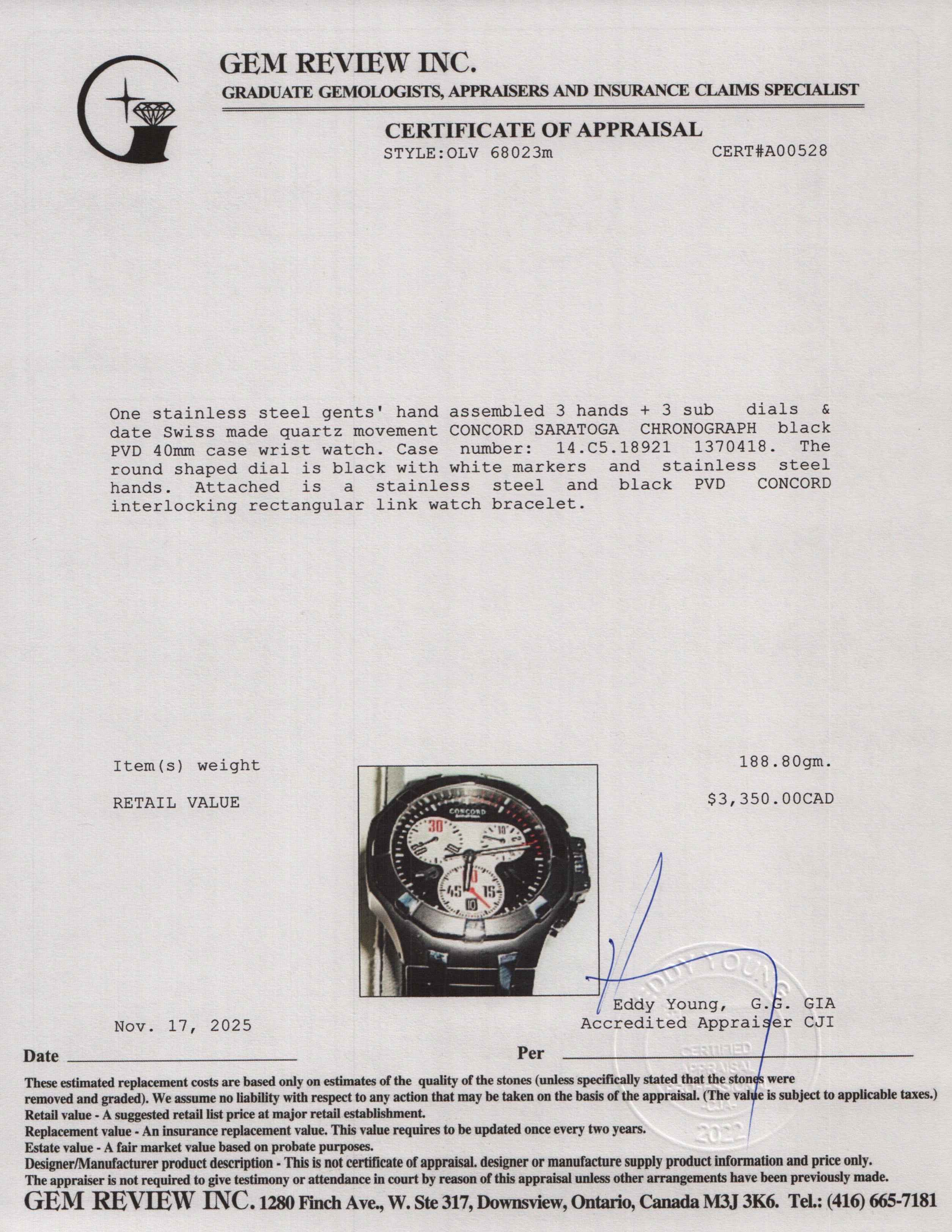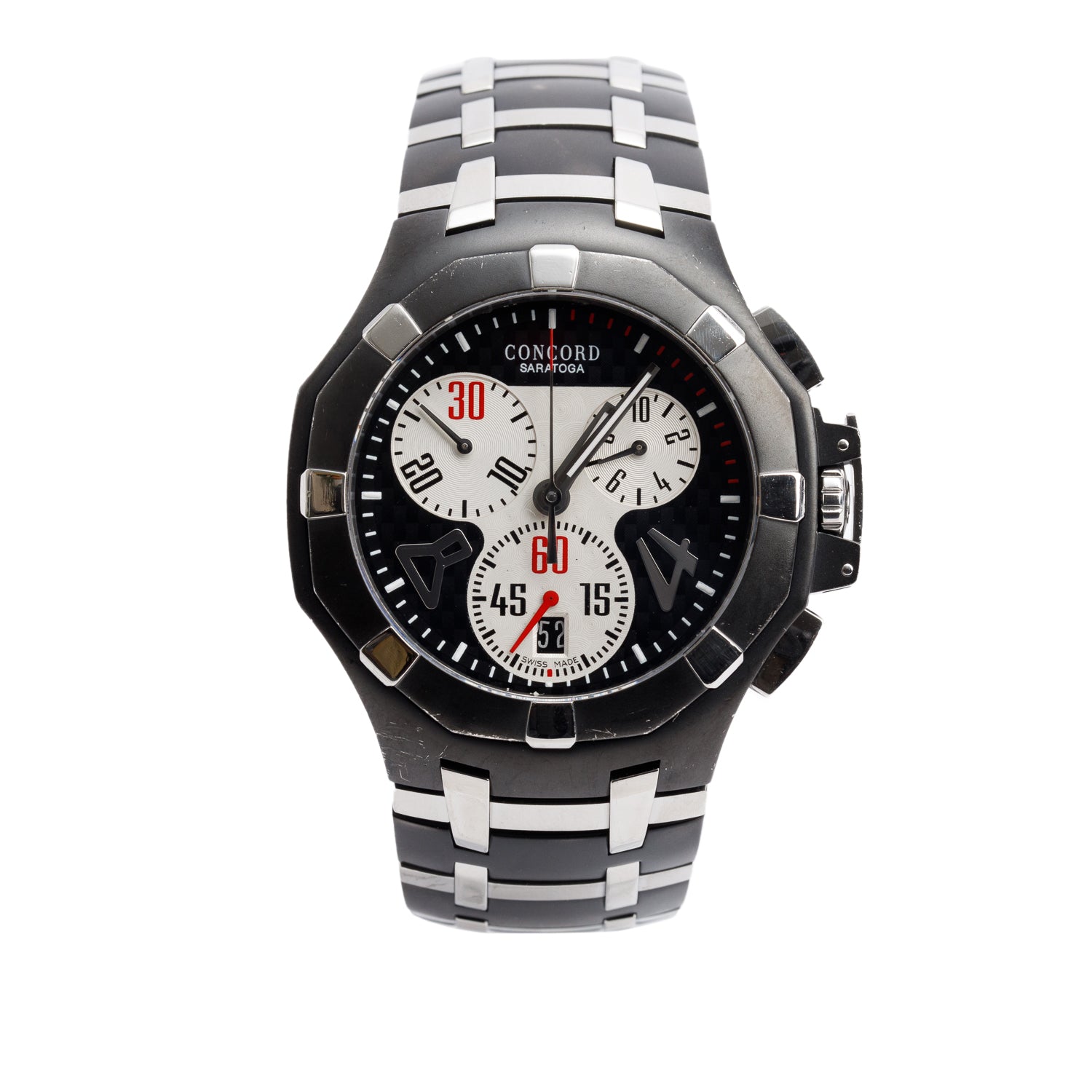Black PVD & Stainless Steel Saratoga 40 MM Chronograph Quartz Watch Silver Black & Silver Dial