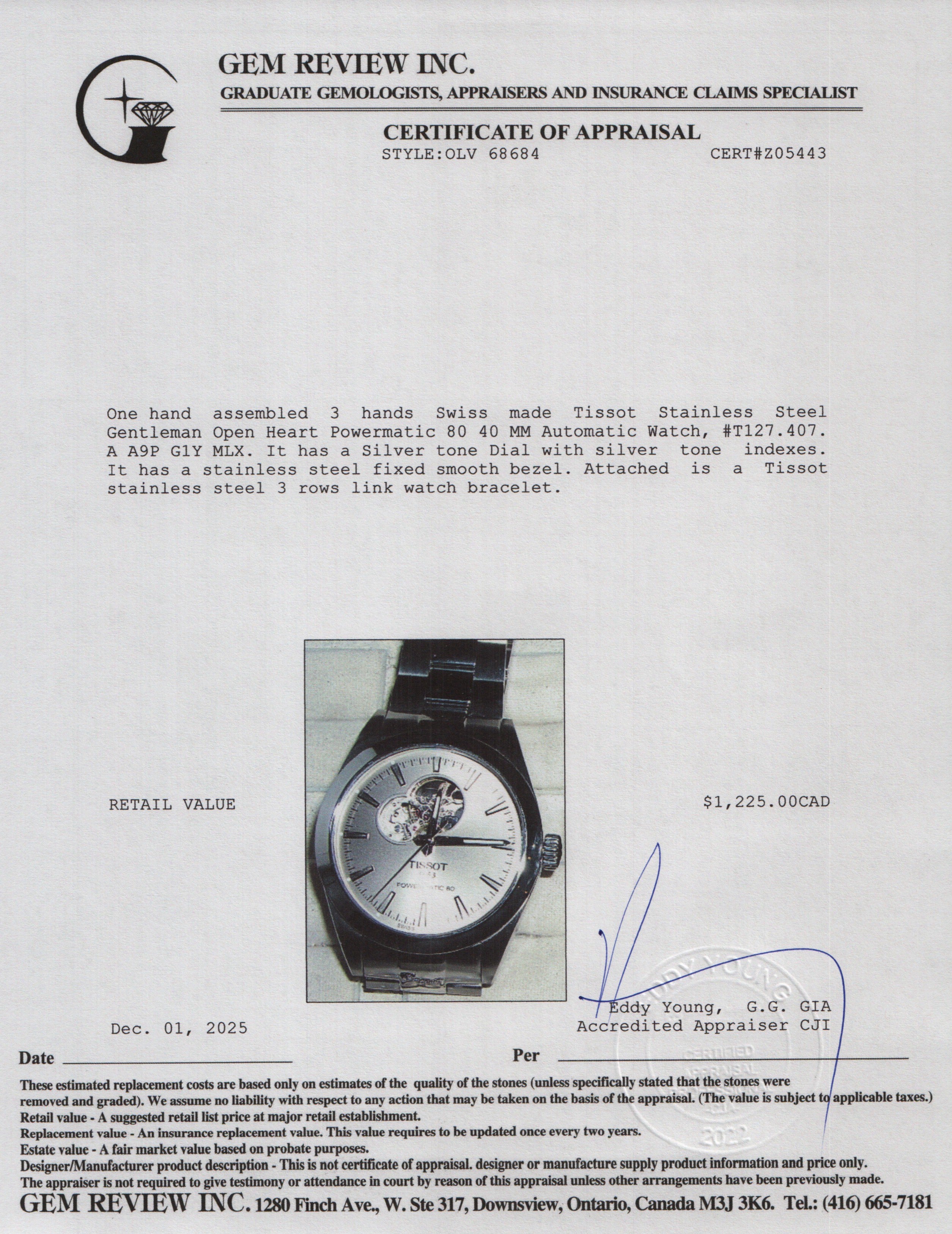 Stainless Steel Gentleman Open Heart Powermatic 80 40 MM Automatic Watch Silver Dial w/ Box & Papers
