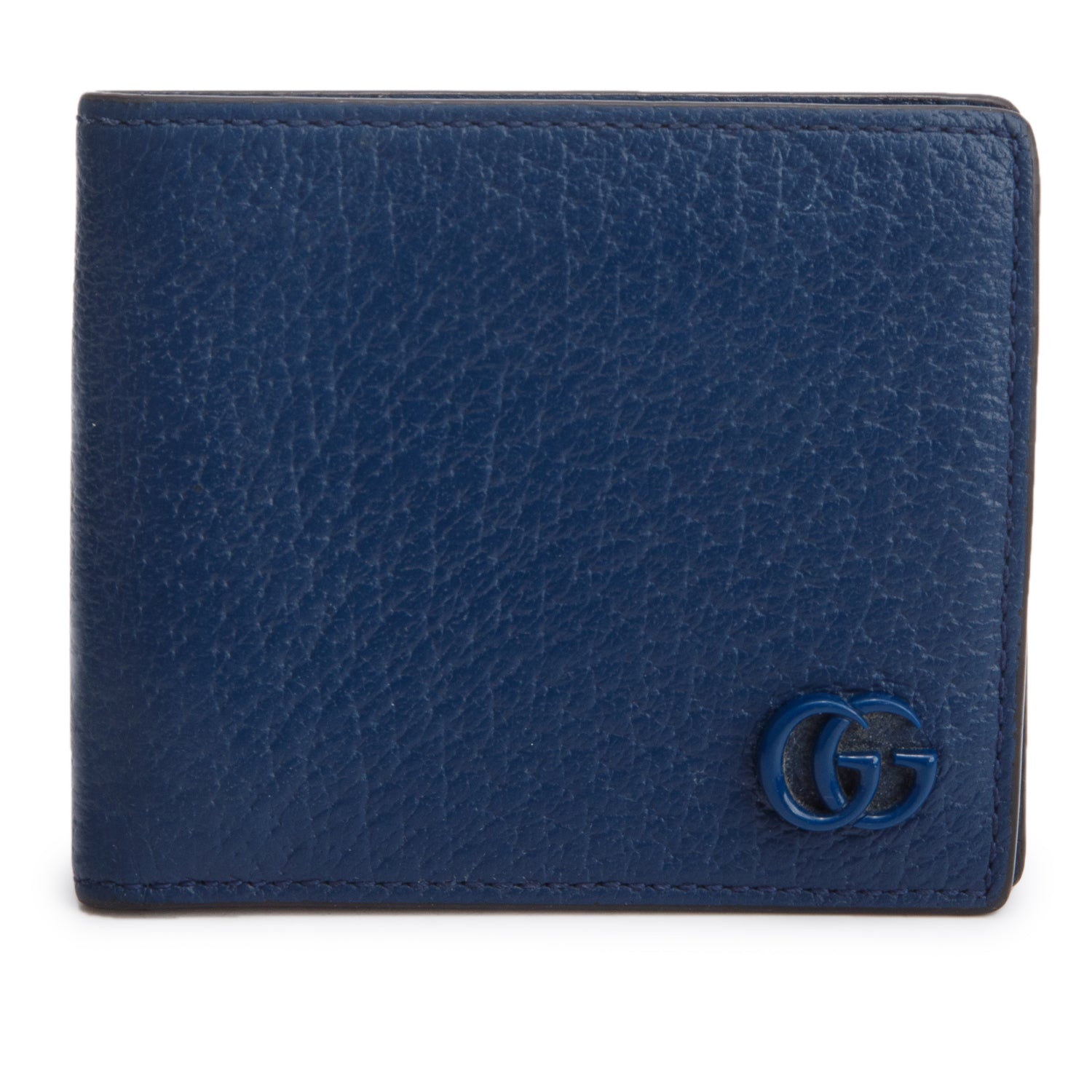 Blue Calfskin GG Mamont Bi-Fold Card Case Wallet