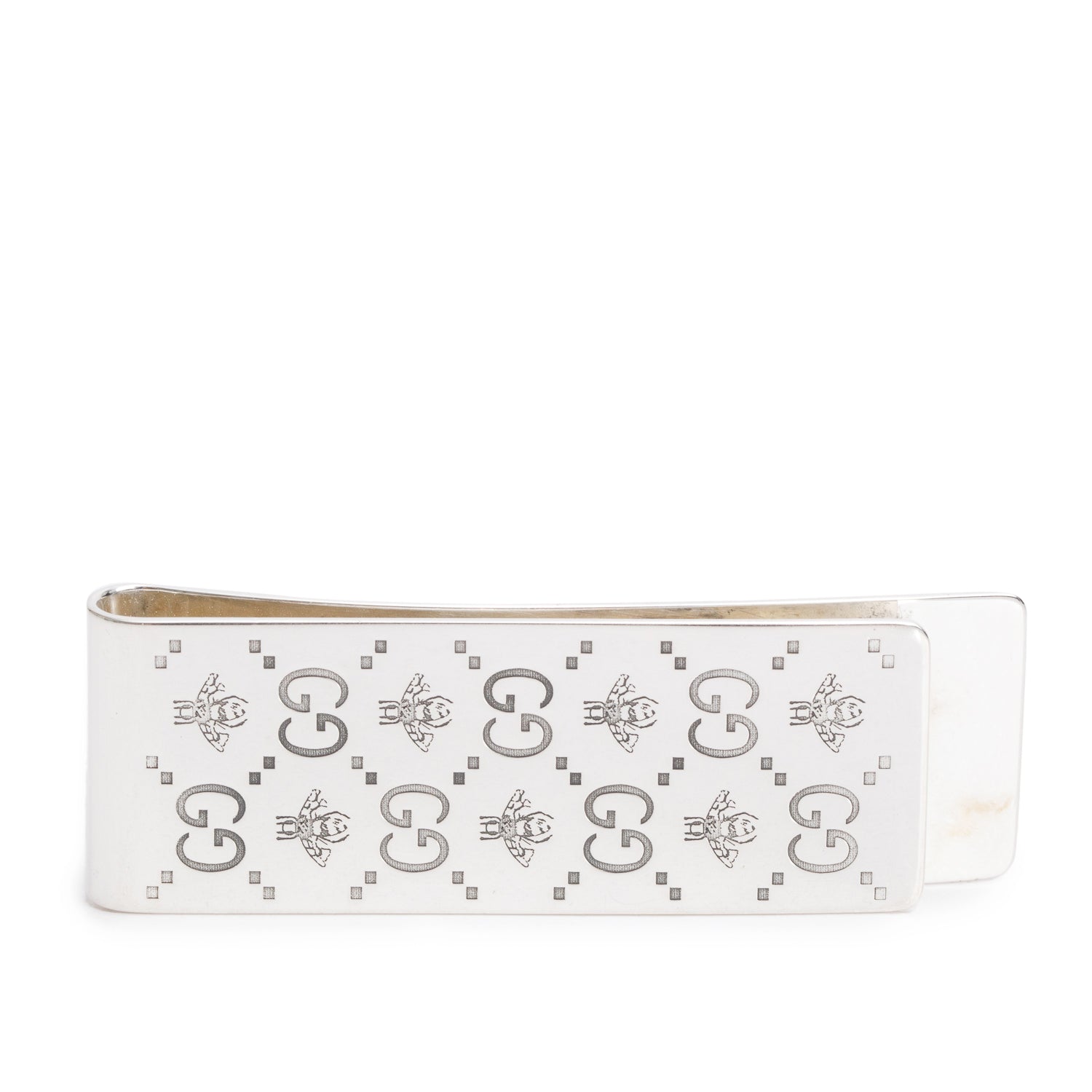 Gucci Sterling Silver GG & Bee Accent Money Clip w/ Box