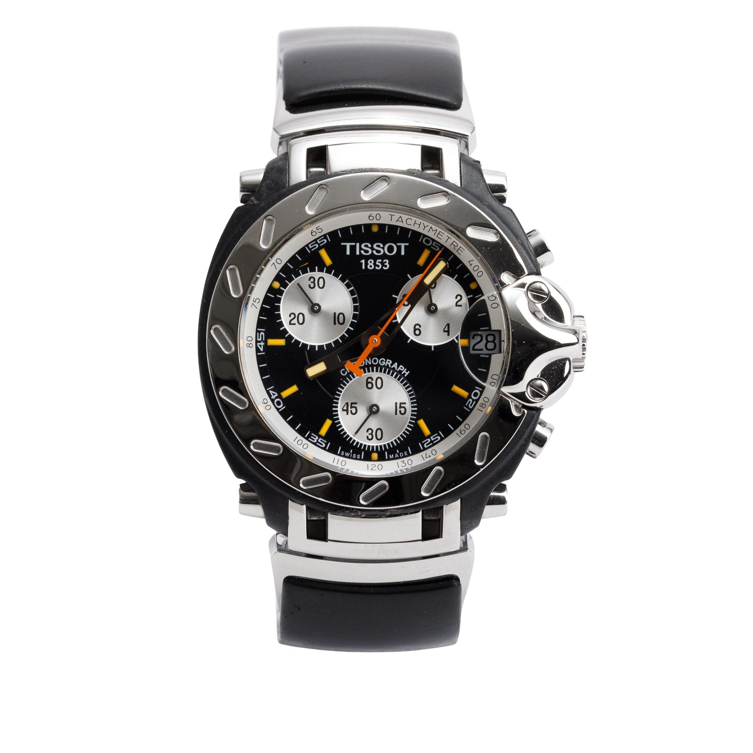 Stainless Steel T-Race 43 MM Chronograph Quartz Watch Black Dial