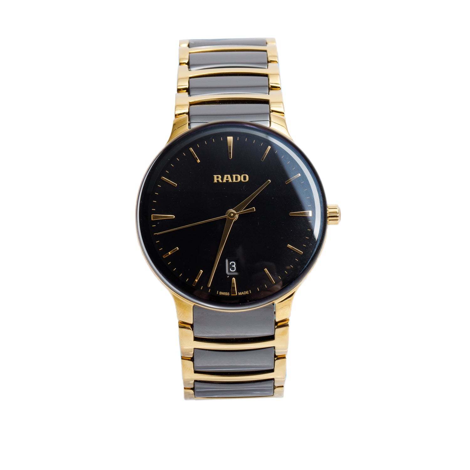 2024 Gold Plated Stainless Steel & Black Ceramic Centrix 39.5 MM Quartz Watch, Black Dial w/ Box & Papers