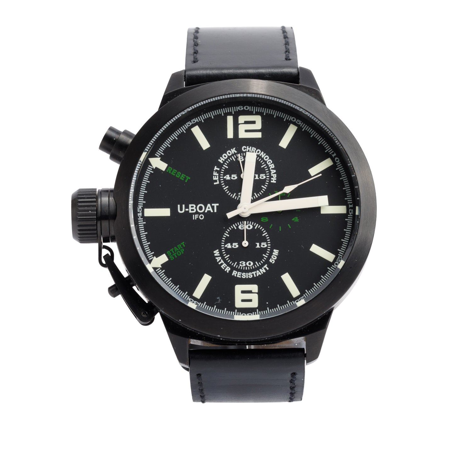 Limited Edition Black PVD Stainless Steel Left Hook 53 MM Chronograph Quartz Watch Black Dial B53-08 w/ Box