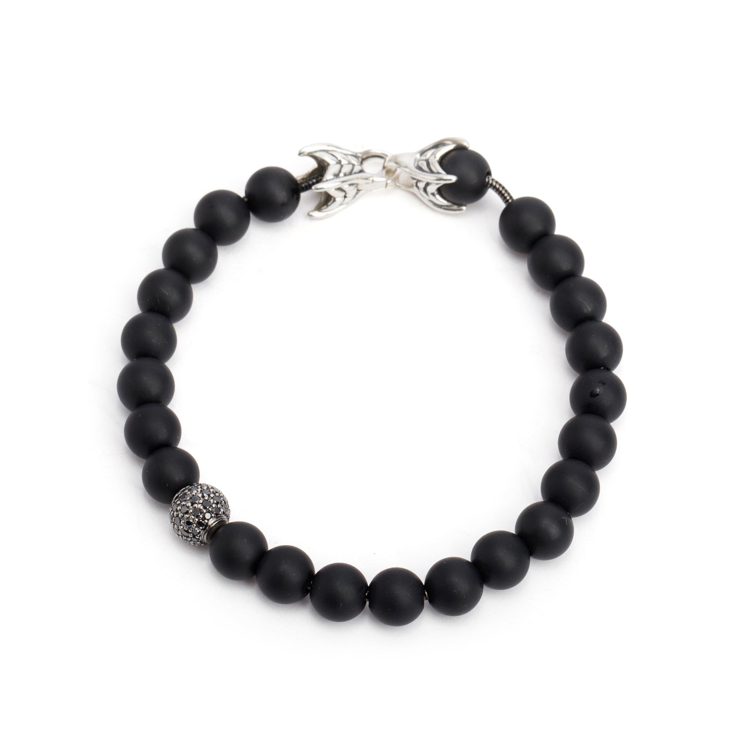 Sterling Silver Black Onyx & Pave Black Diamond 8 MM Spiritual Beads Bracelet