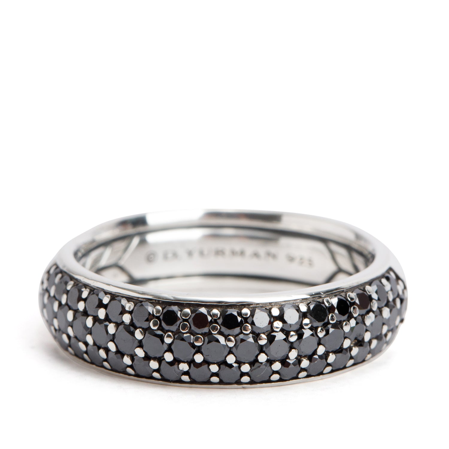 Sterling Silver Pave Black Diamond Beveled 6 MM Band Ring, Size 8.5