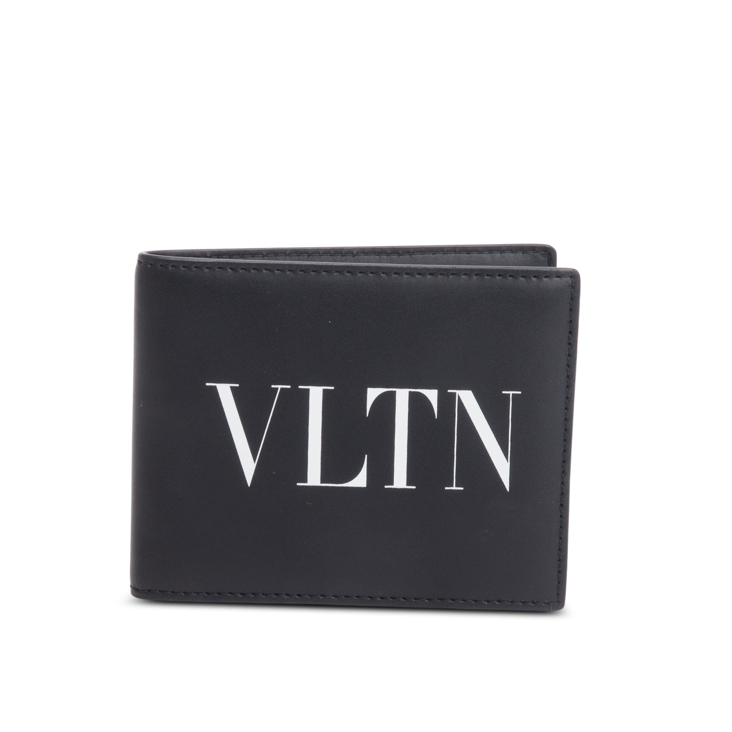 Black Calfskin Leather VLTN Logo Bifold Wallet w/ Box