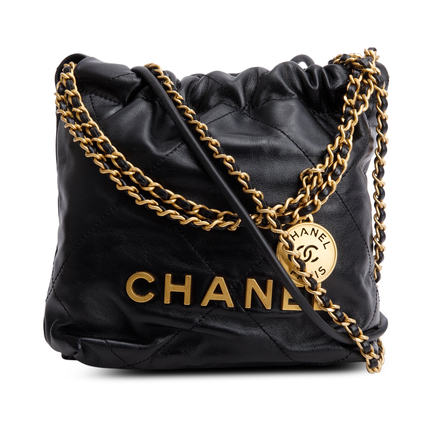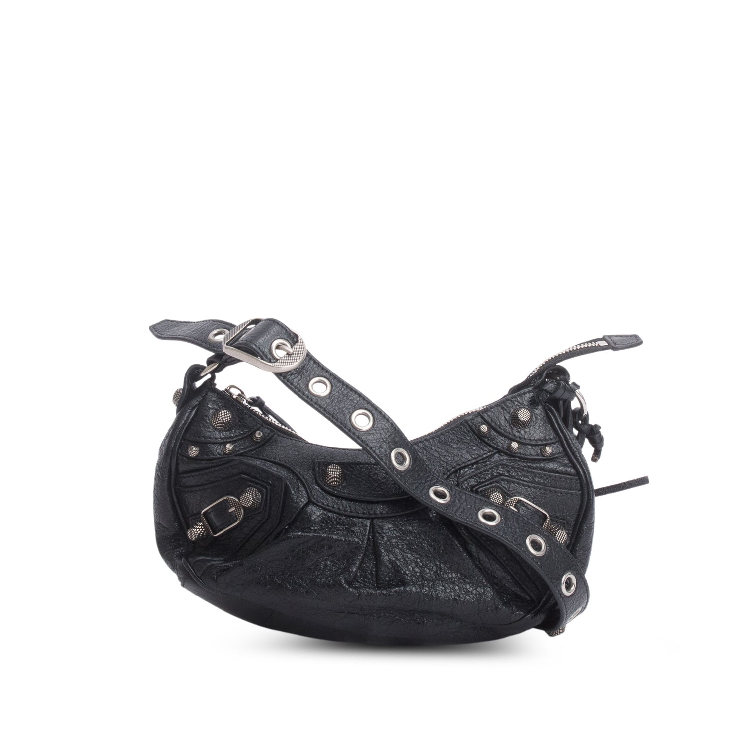 Black Arena Calfskin Leather Le Cagole XS Chain Shoulder Bag