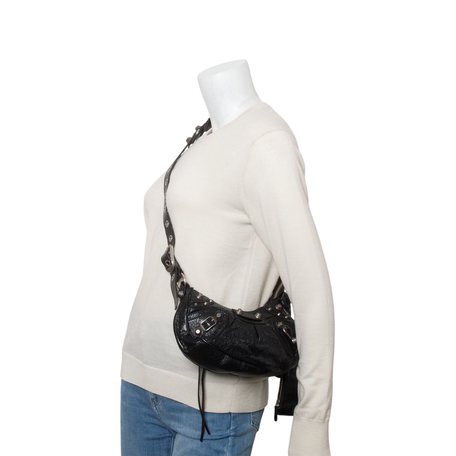Black Arena Calfskin Leather Le Cagole XS Chain Shoulder Bag