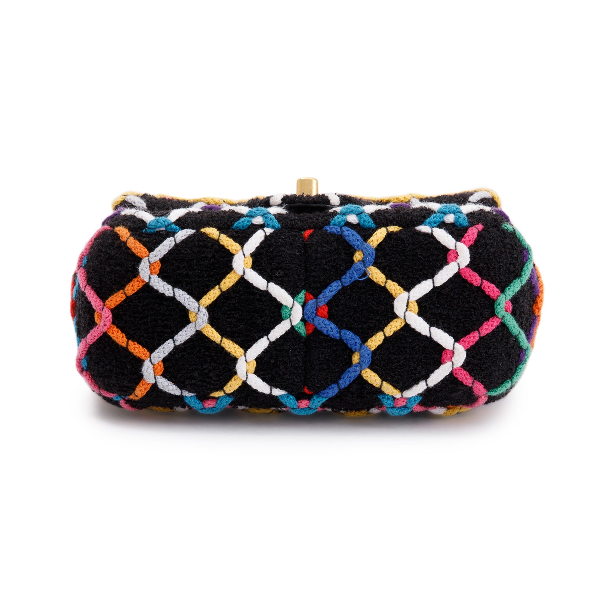 2022 Diamond Threaded Tweed CC Pearl Crush Square Mini Flap Bag