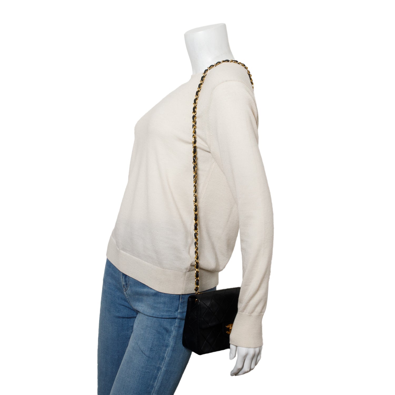 Vintage Black Lambskin Classic Mini Square Flap w/ Authenticity Card