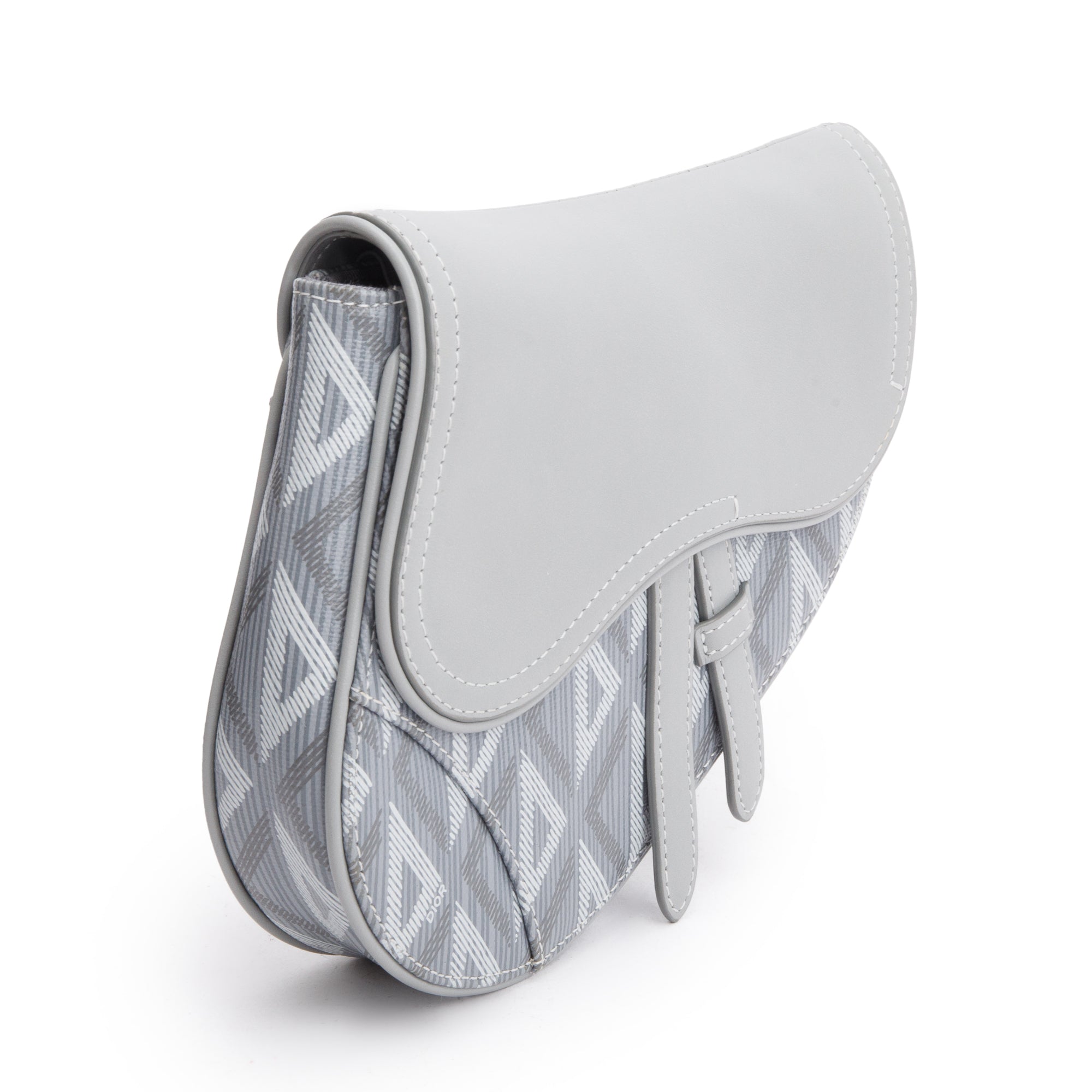 2022 Grey Calfskin Leather CD Diamond Coated Canvas Mini Saddle Crossbody Bag
