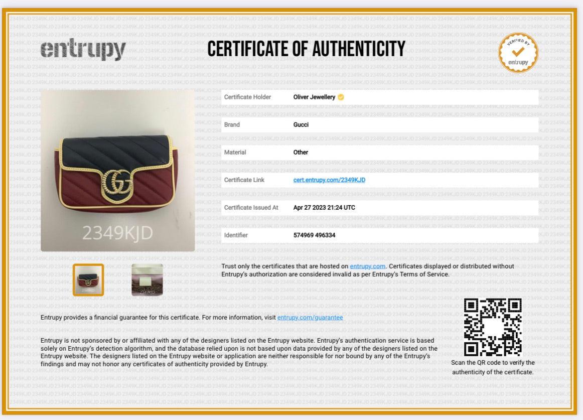 Dust Bag, Chain Shoulder Strap, Key Ring, Entrupy Certificate of Authenticity