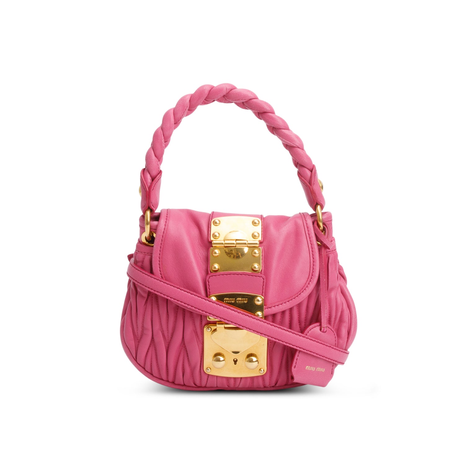 Pink Nappa Matelasse Leather Mini Coffer Bag w/ Strap & Authenticity Card