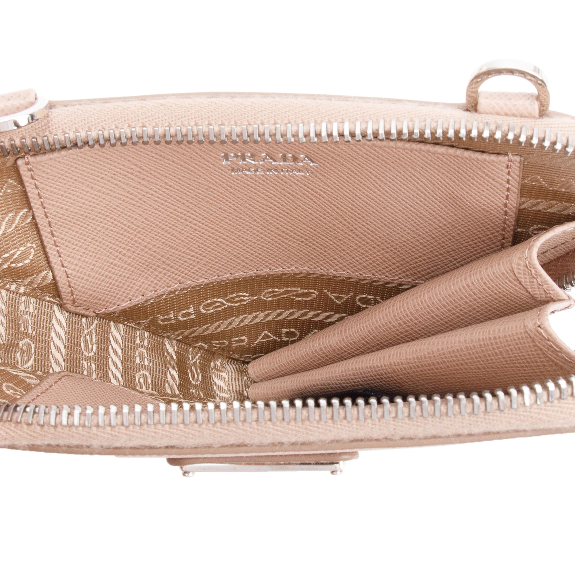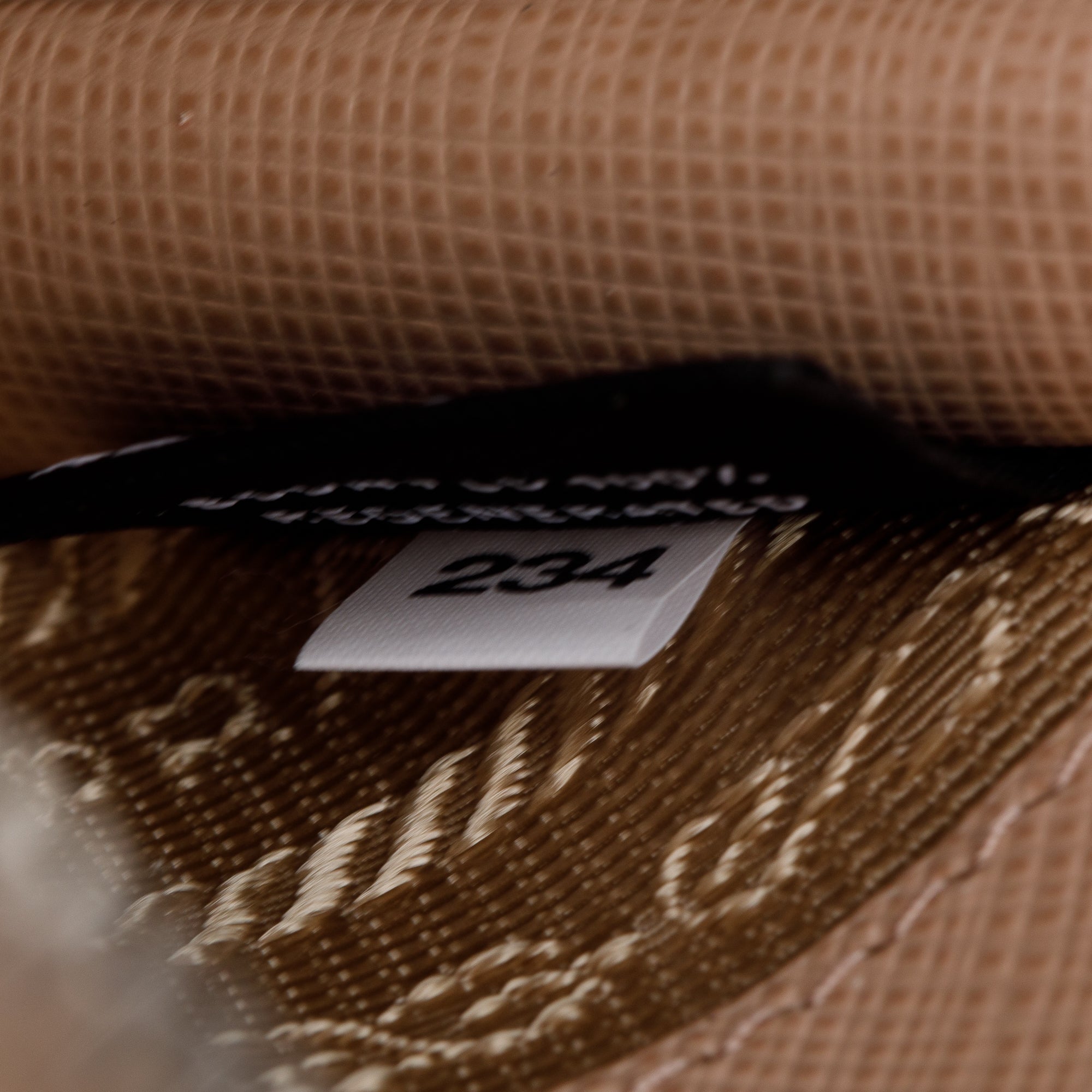 Beige Saffiano Leather Mini Triangle Crossbody Bag w/ Box & Authenticity Card