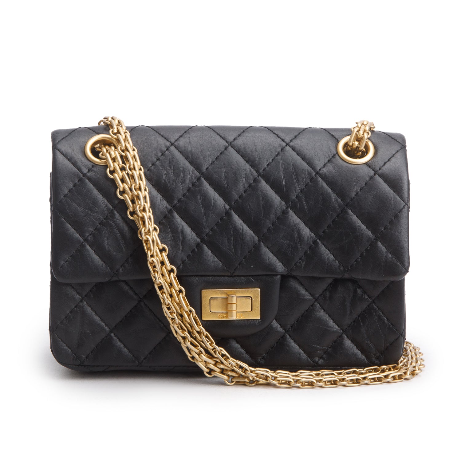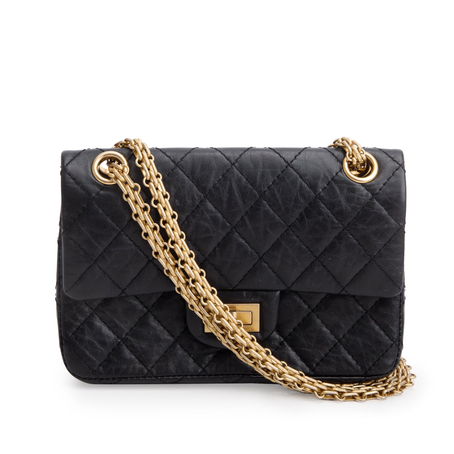 Black Quilted Aged Calfskin Leather Mini 2.55 Reissue Flap Bag