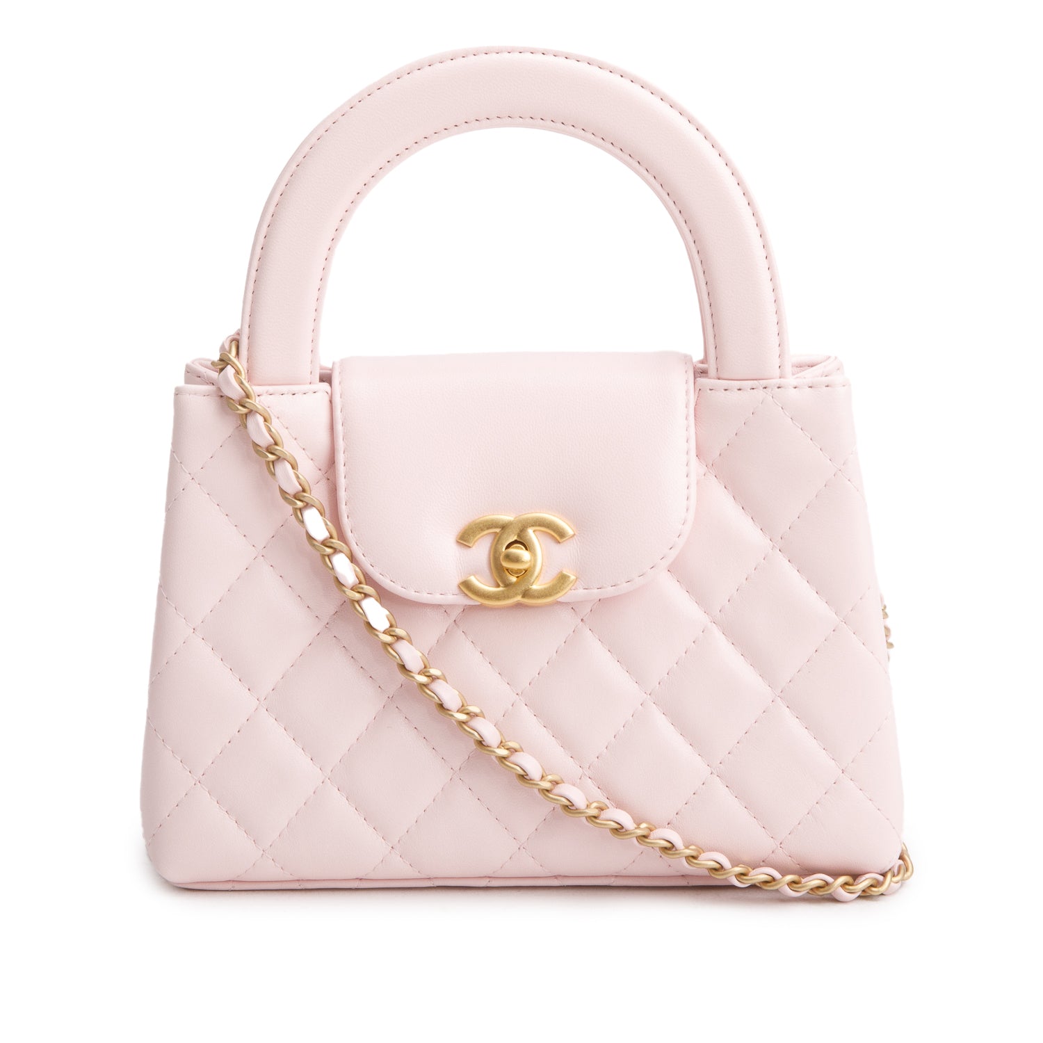 Pink Aged Calfskin Quilted Gabrielle Clutch on Chain w/ Authenticity Card