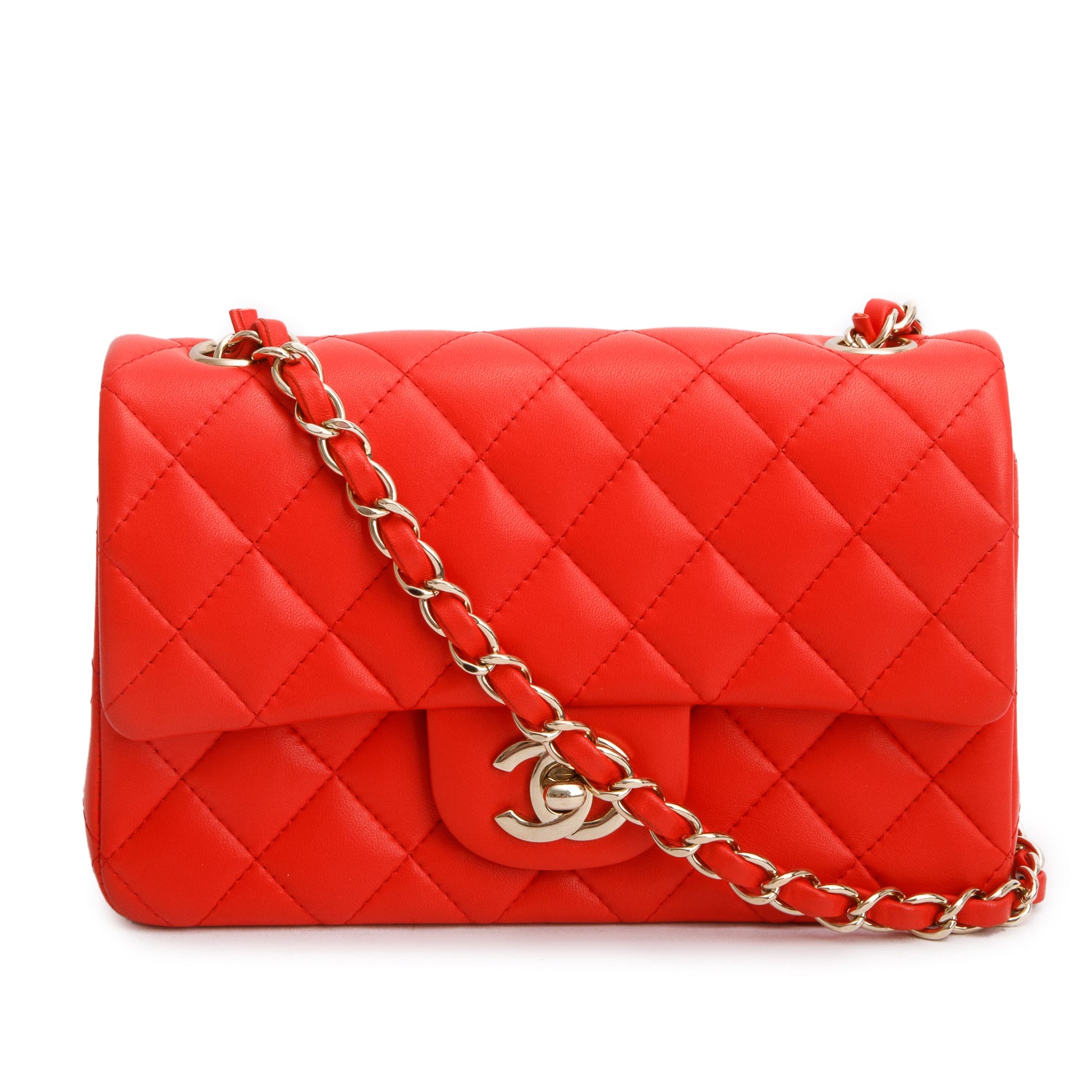 Red Lambskin Quilted Mini Rectangular Flap Bag
