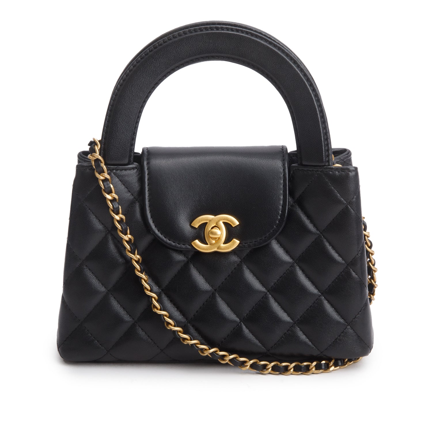 2021-2022 Black Lambskin Quilted Pending CC Wallet on Chain