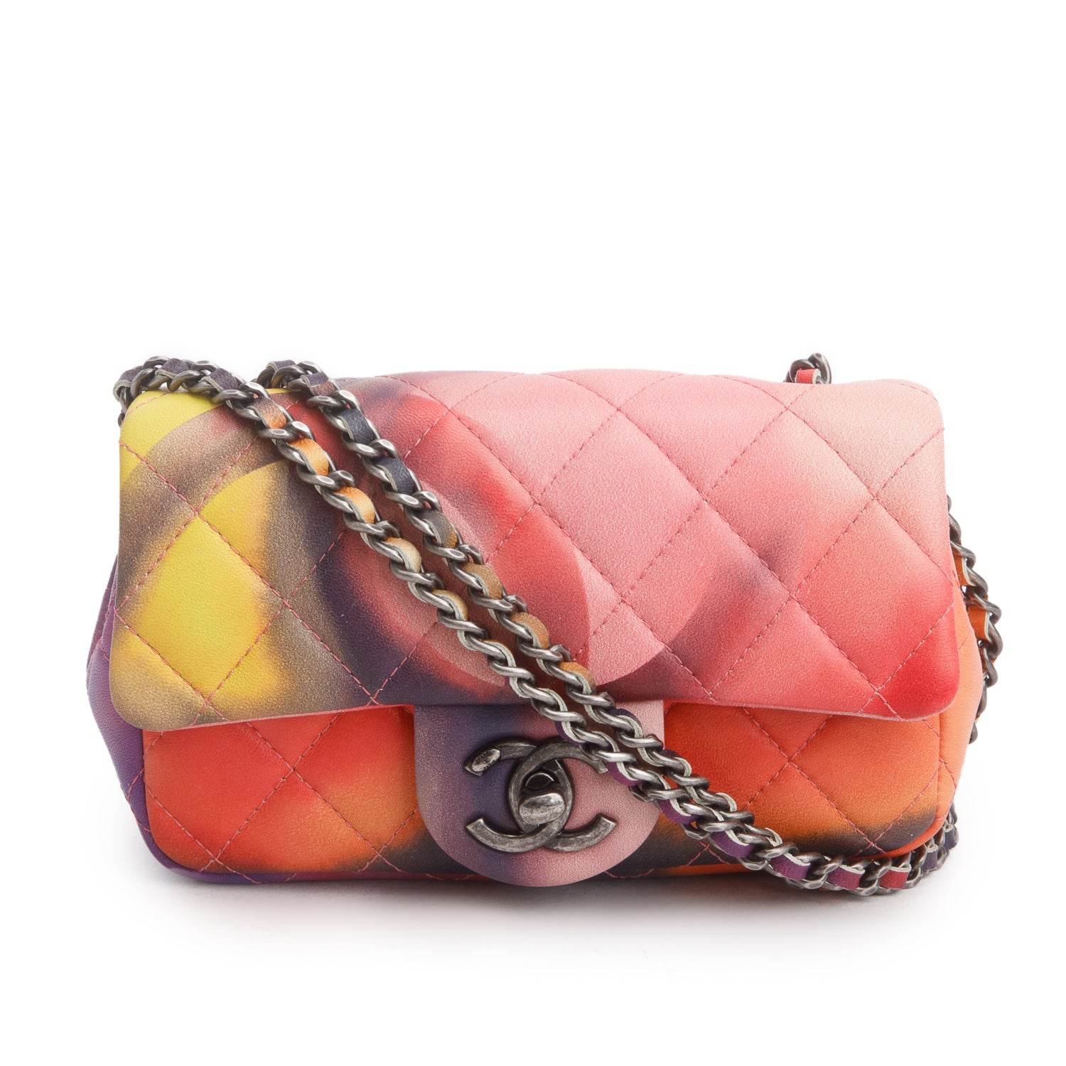 Multicolor Lambskin Quilted Extra Mini Flower Power Flap Bag w/ Receipt