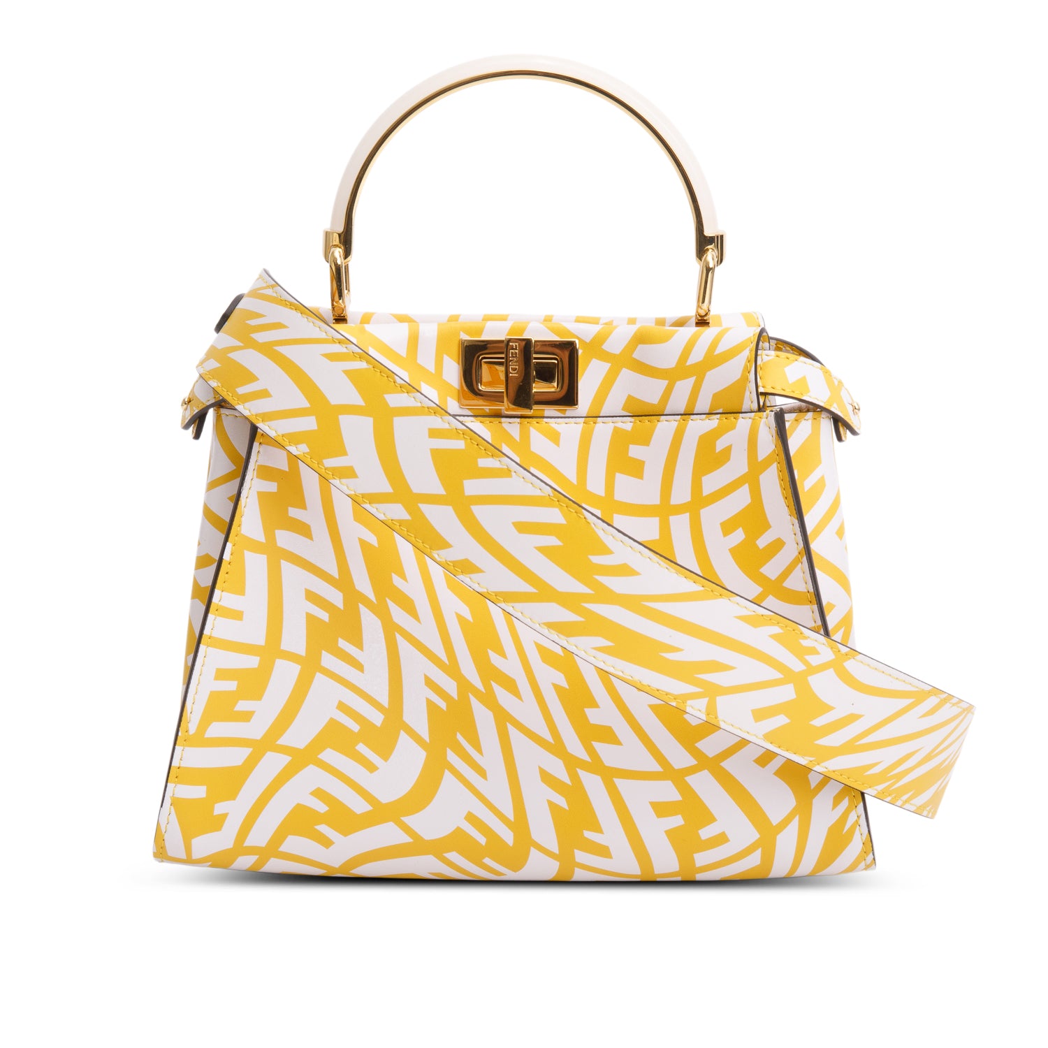 2021 Yellow/White Vitello Libery Shiny Nappa Plexiglass FF Vertigo Mini Peekaboo Iconic Satchel w/ Strap