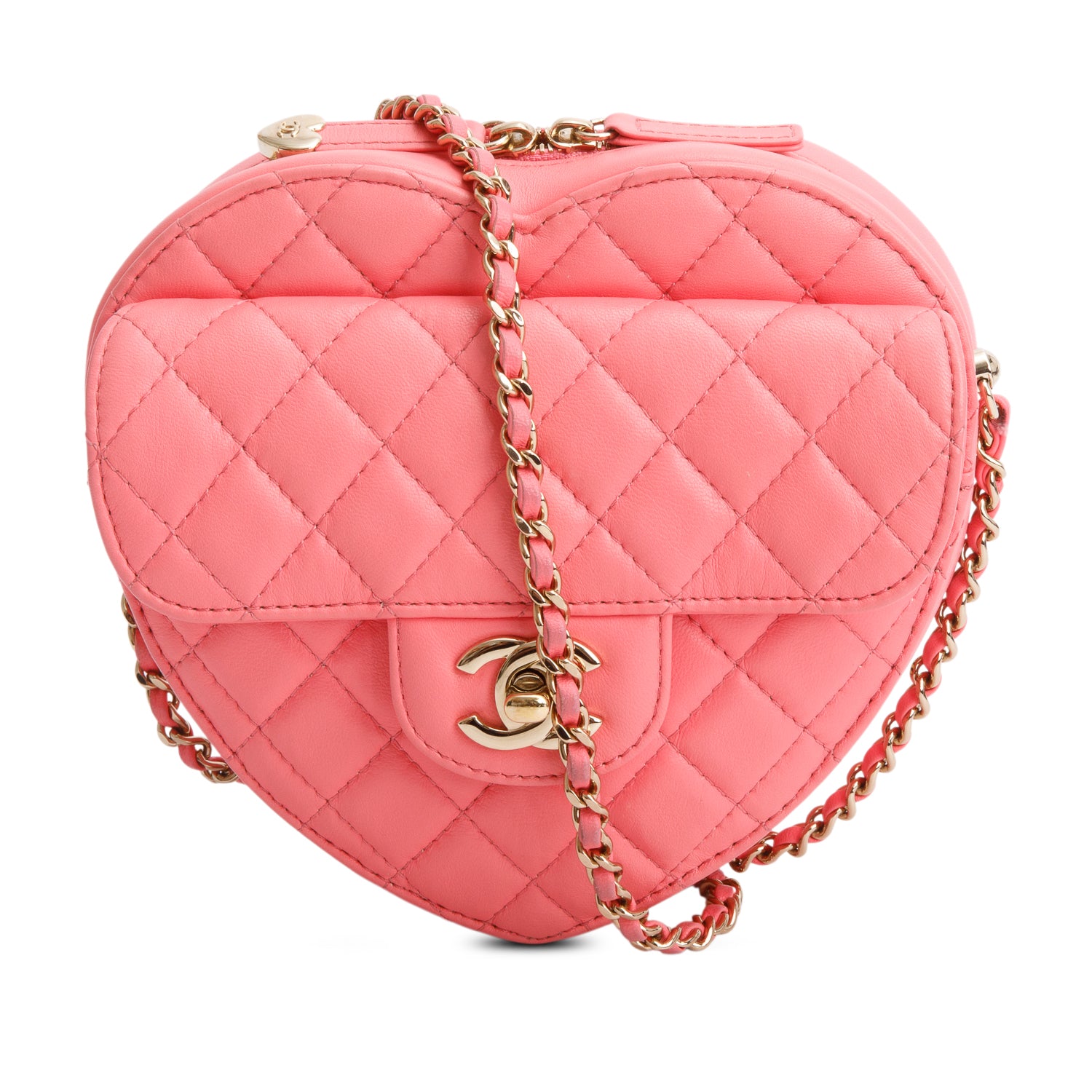 Pink Lambskin Leather CC In Love Heart Bag w/ Box