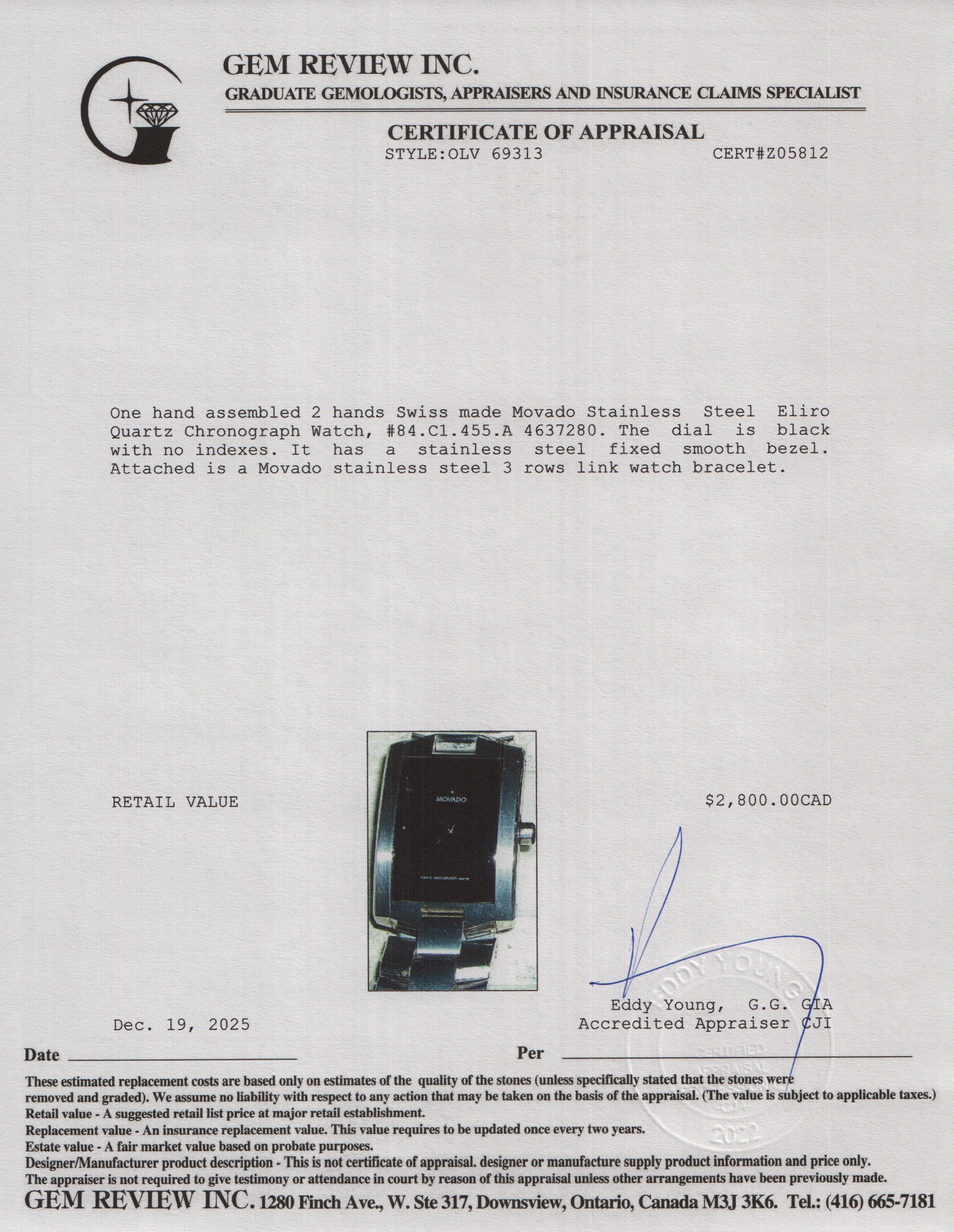 Stainless Steel Eliro Quartz Chronograph Watch Black Dial w/ Box