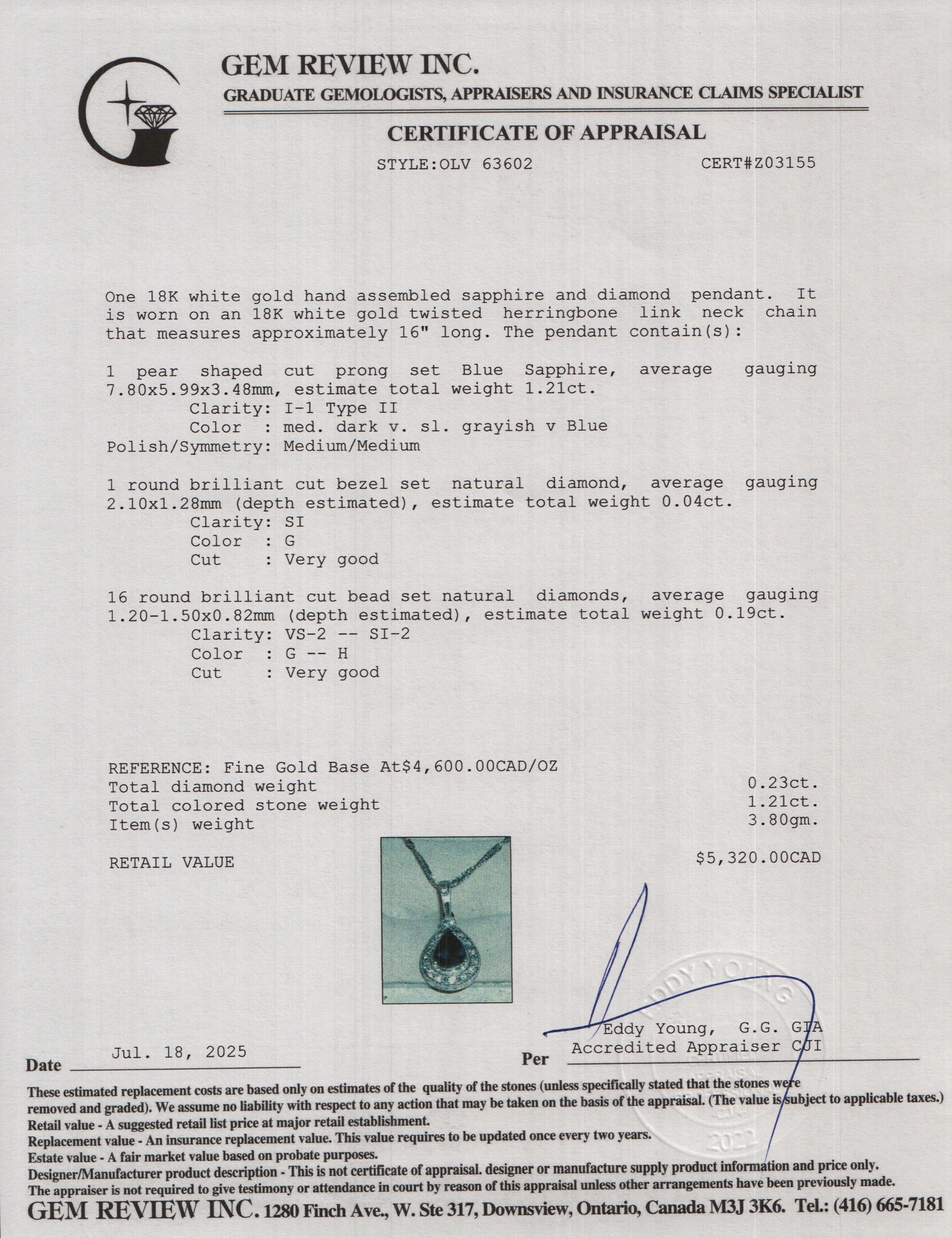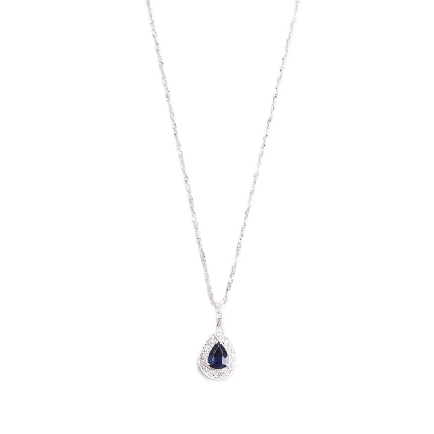 14k White Gold Blue Sapphire and Diamond Pendant Necklace