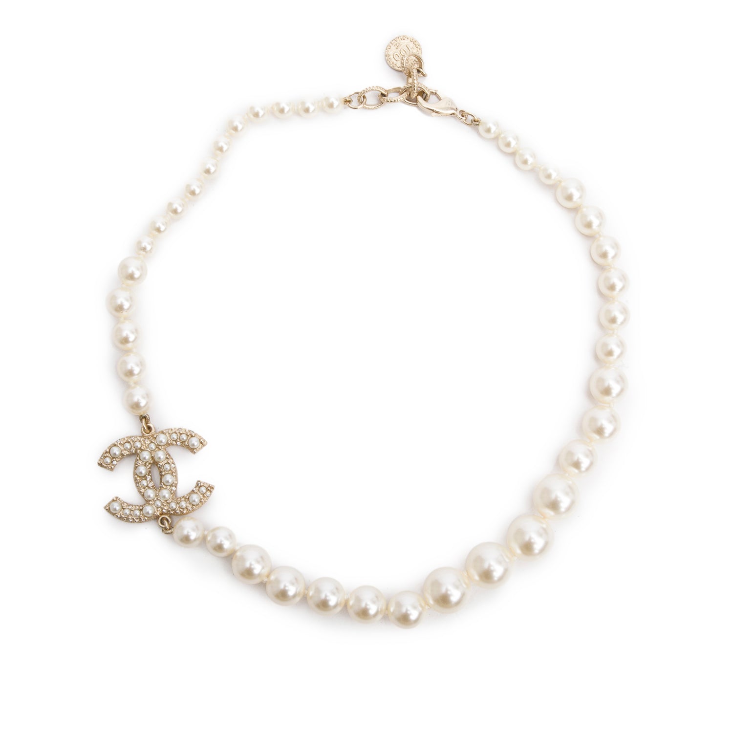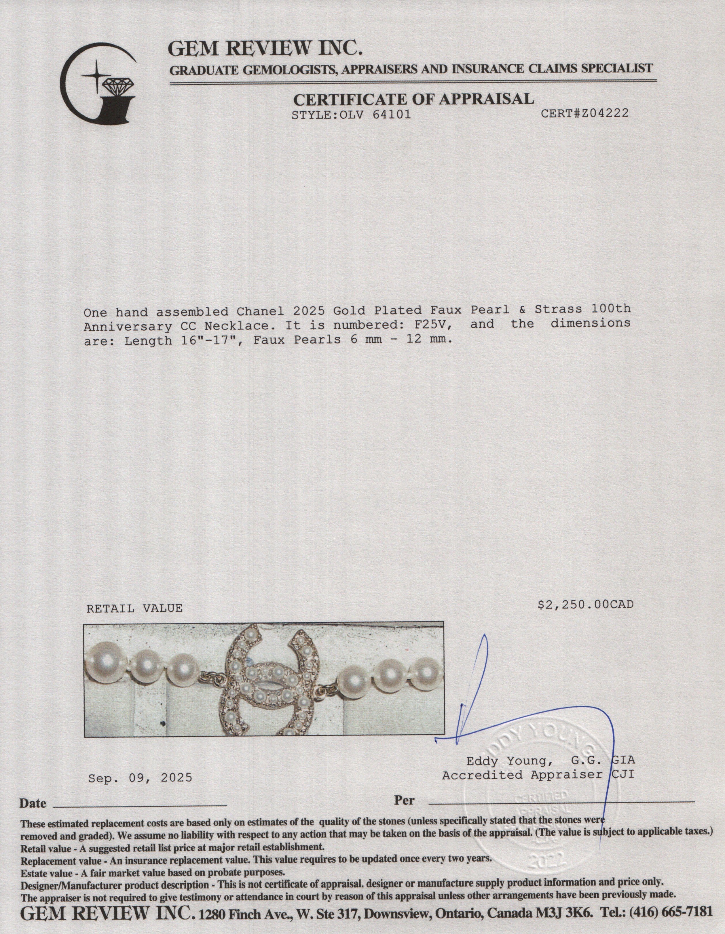 2025 Gold Plated Faux Pearl & Strass 100th Anniversary CC Necklace