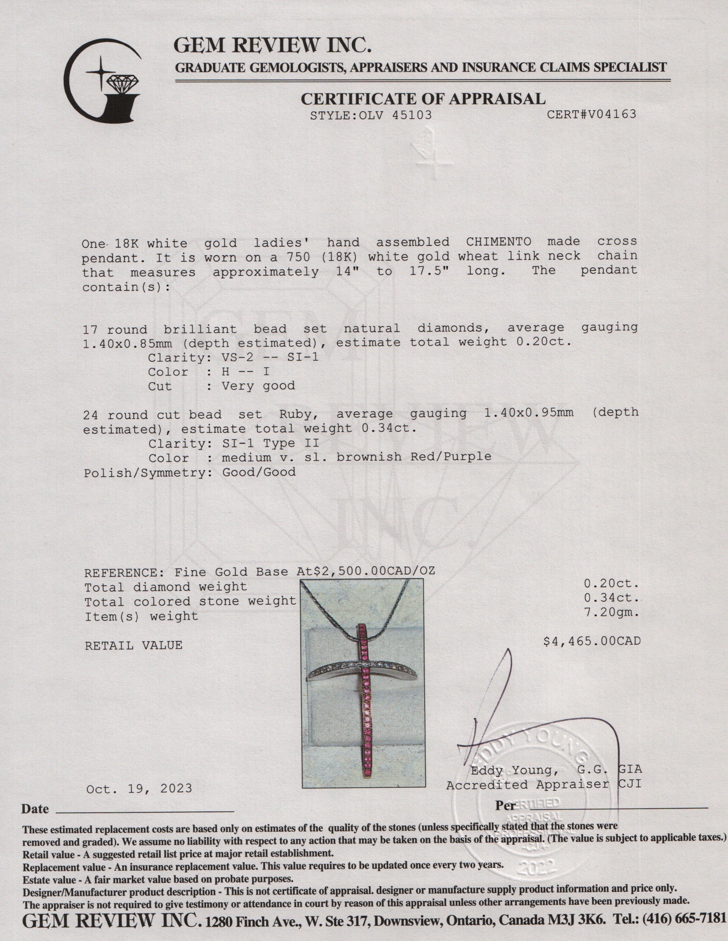 18k White Gold Ruby & Diamond Cross Pendant Necklace