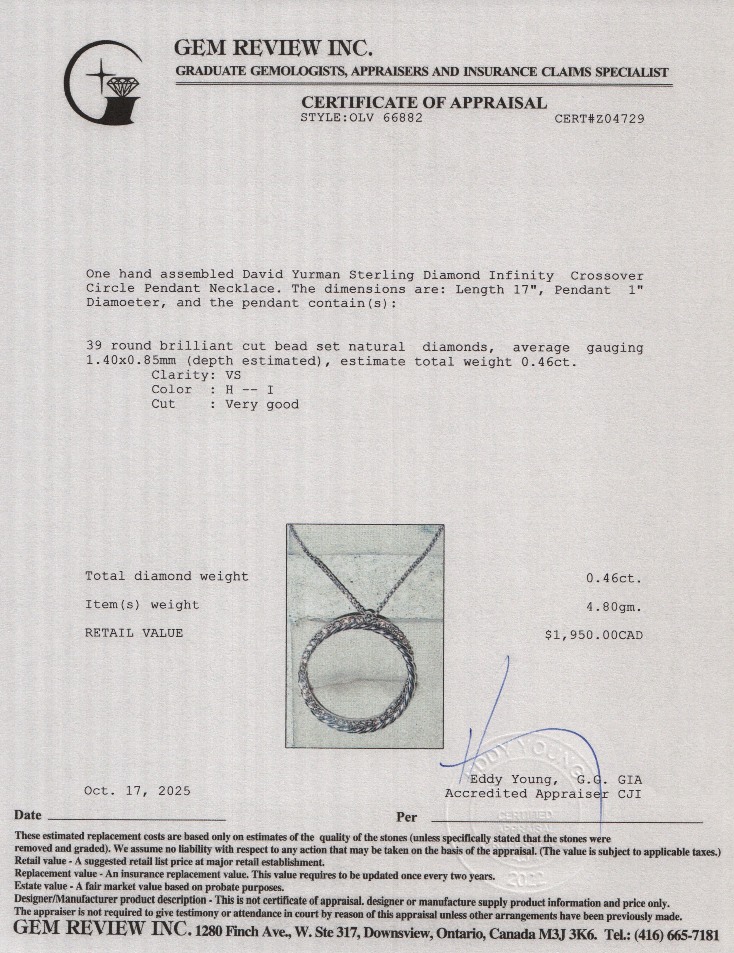 Sterling Diamond Infinity Crossover Circle Pendant Necklace