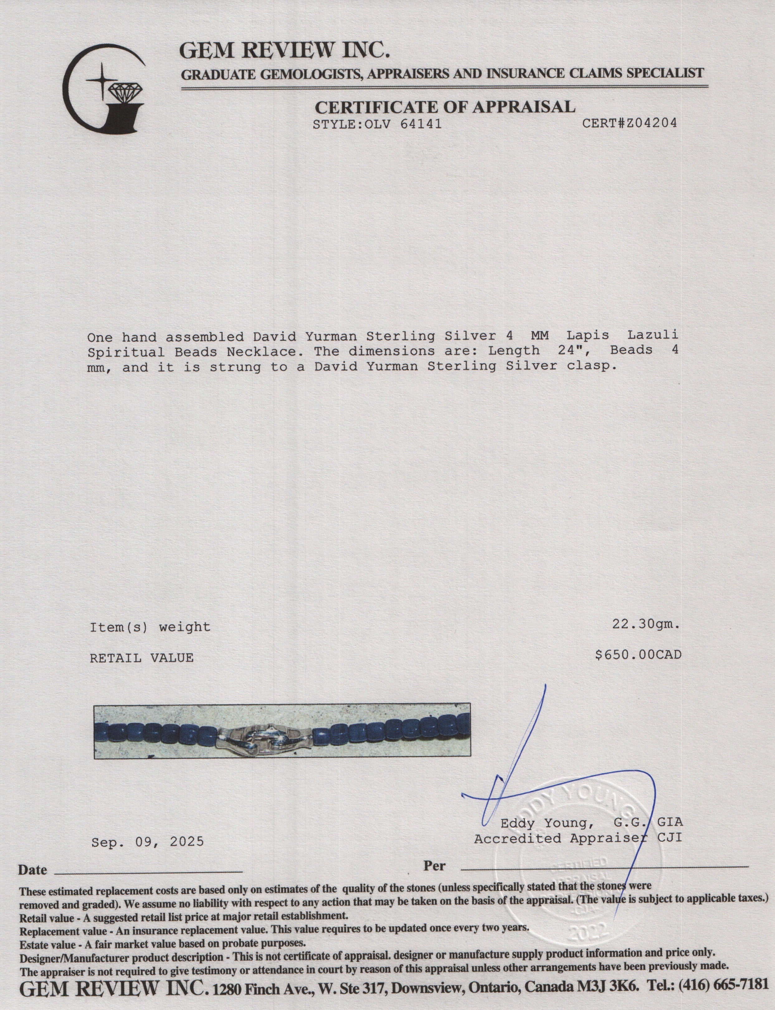 Sterling Silver 4 MM Lapis Lazuli Spiritual Beads Necklace