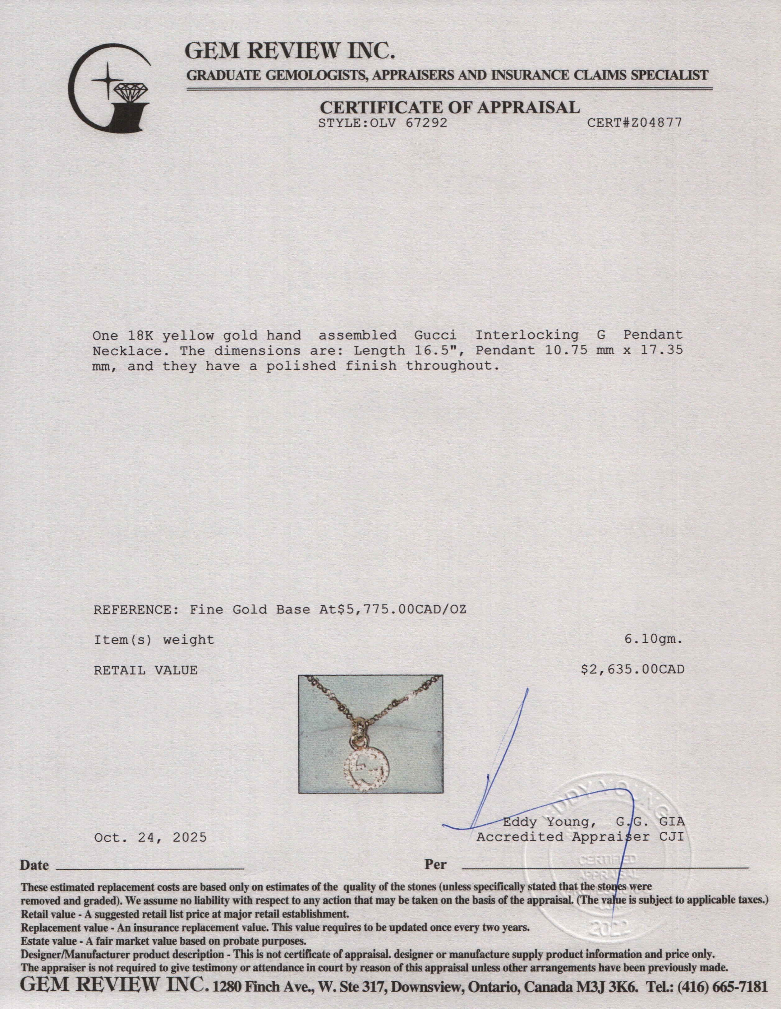 18k Yellow Gold Interlocking G Pendant Necklace w/ Box