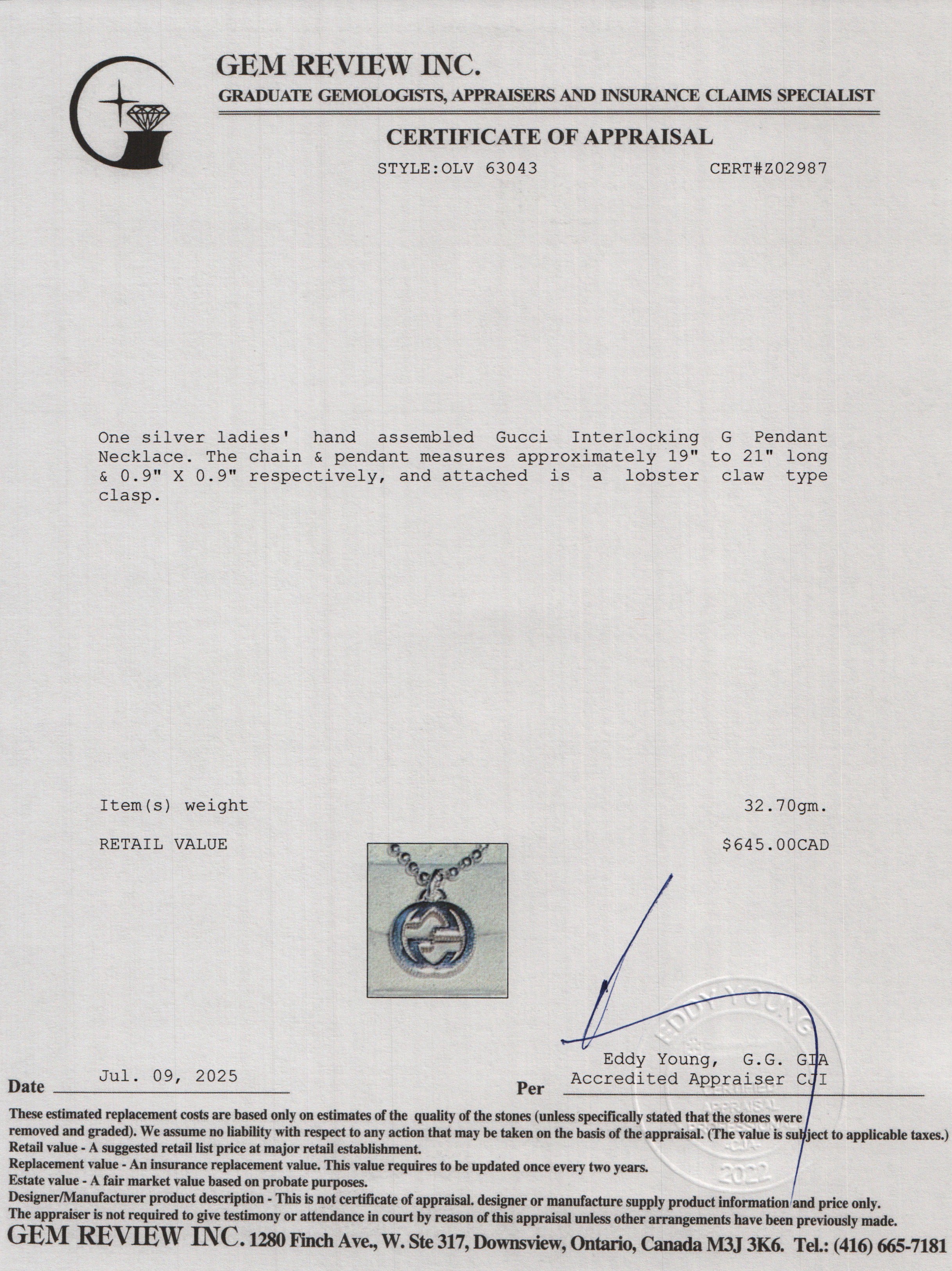 Sterling Silver Interlocking G Pendant Bead Necklace w/ Box