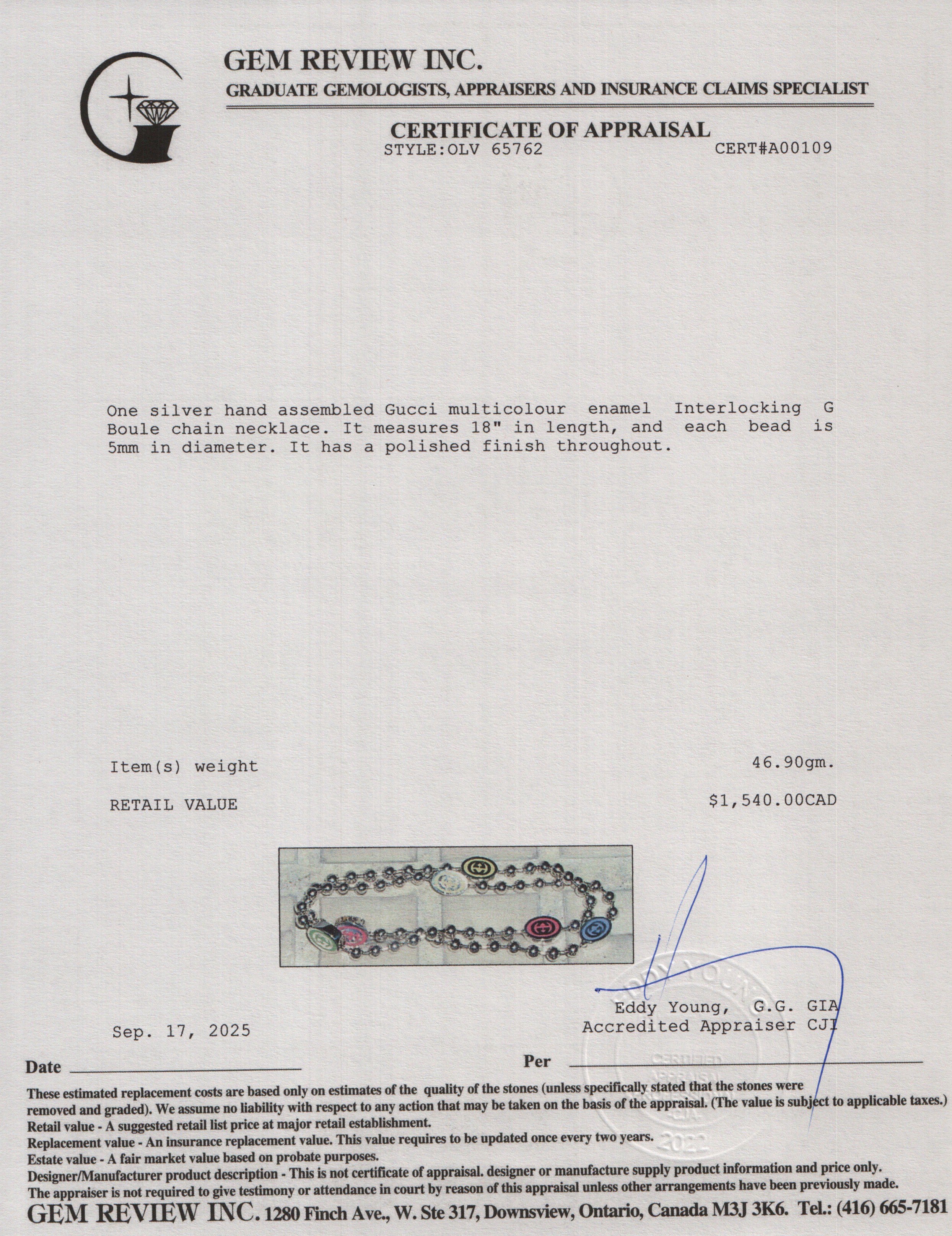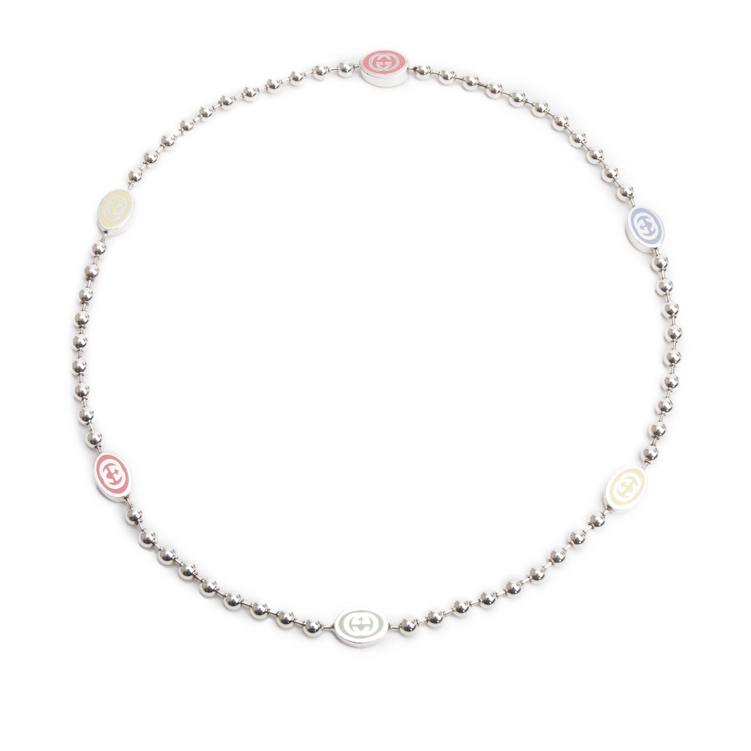 Sterling Silver Multicolour Enamel Interlocking G Boule Chain Necklace w/ Box
