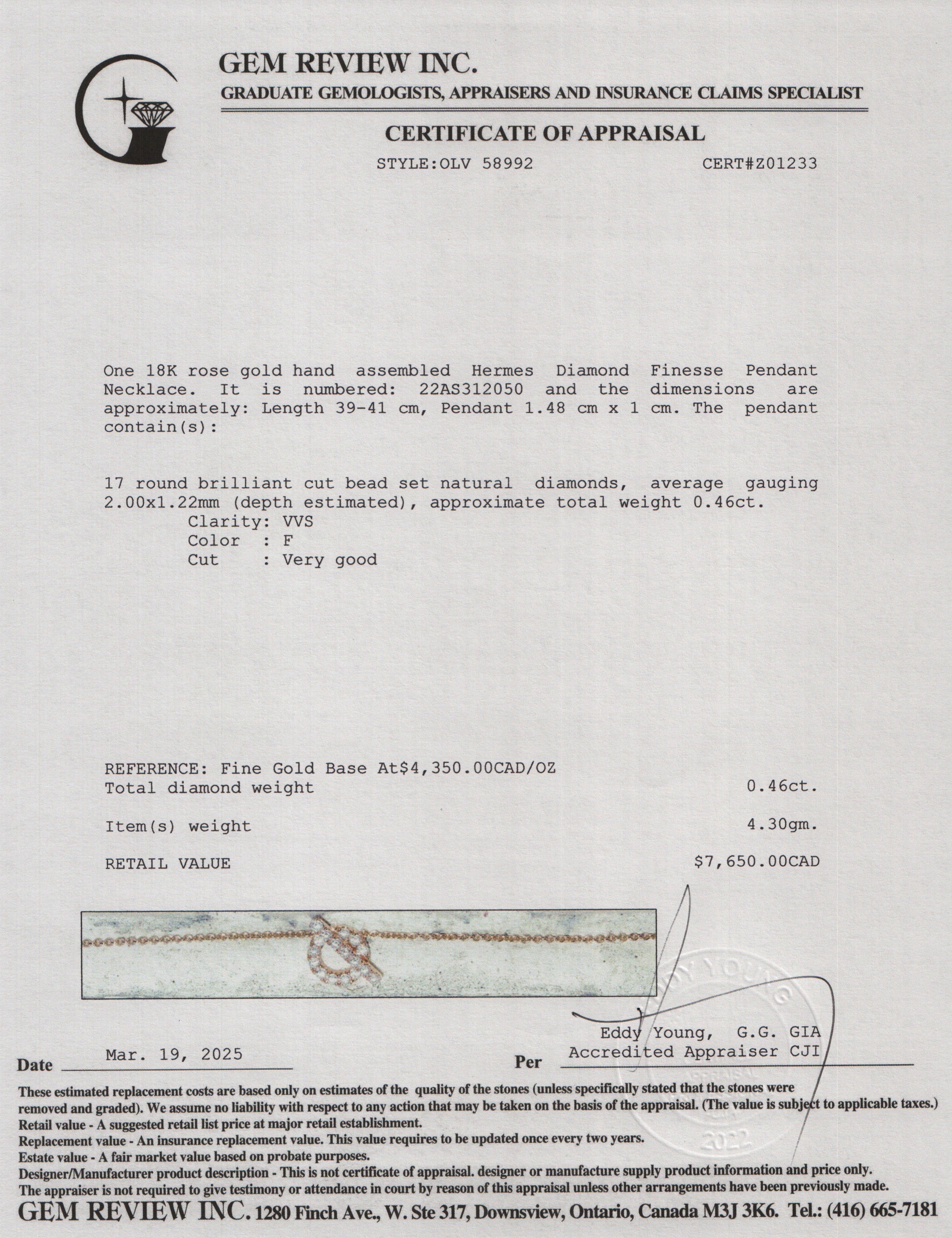 2024 18k Rose Gold Diamond Finesse Pendant Necklace w/ Box & Receipt