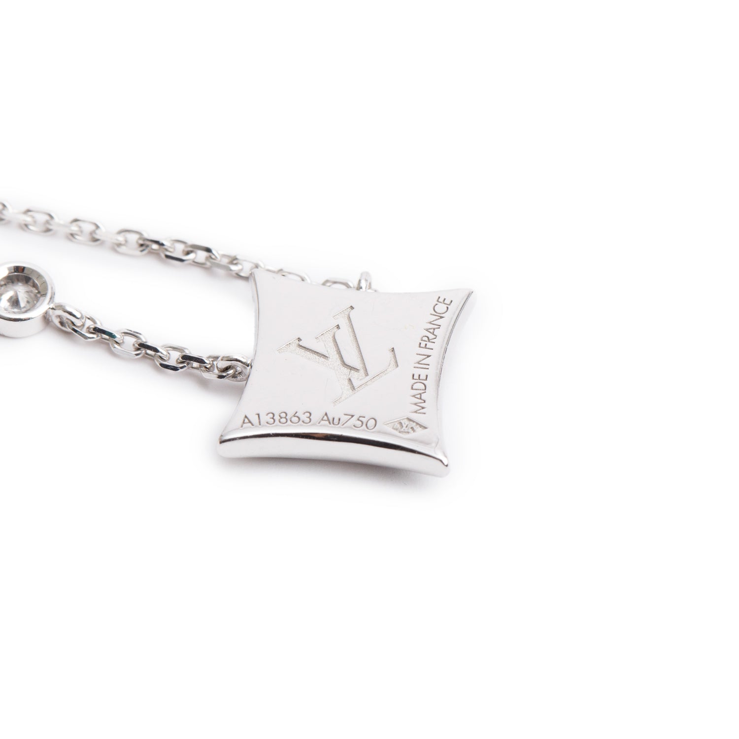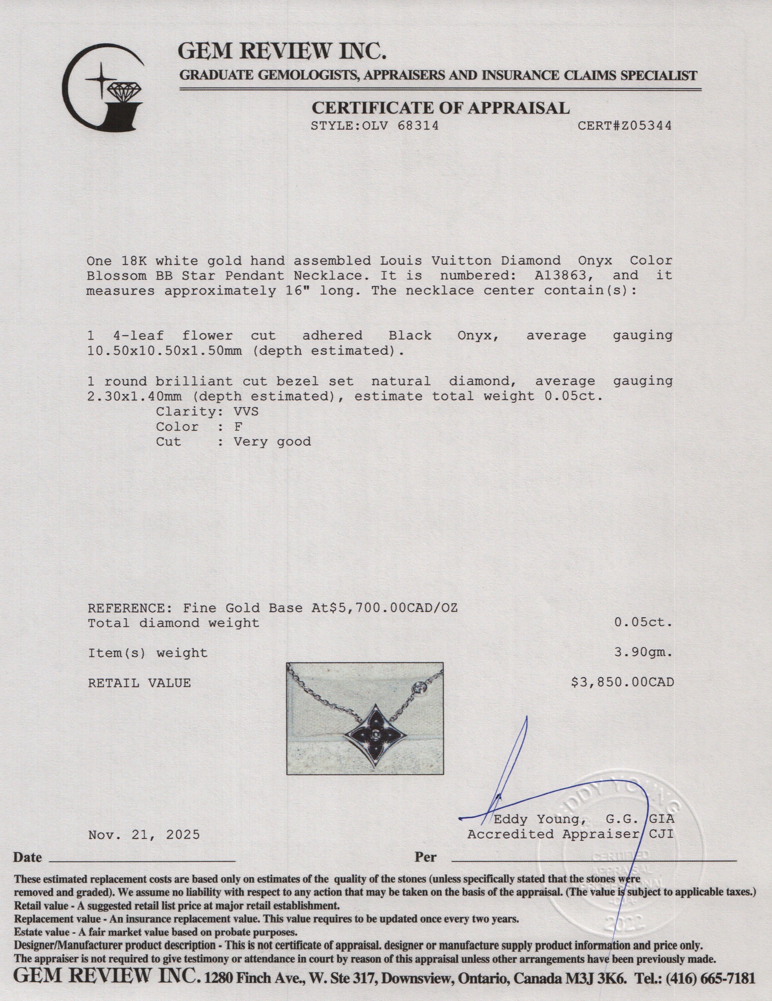 18k White Gold Diamond Onyx Color Blossom BB Star Pendant Necklace w/ Box