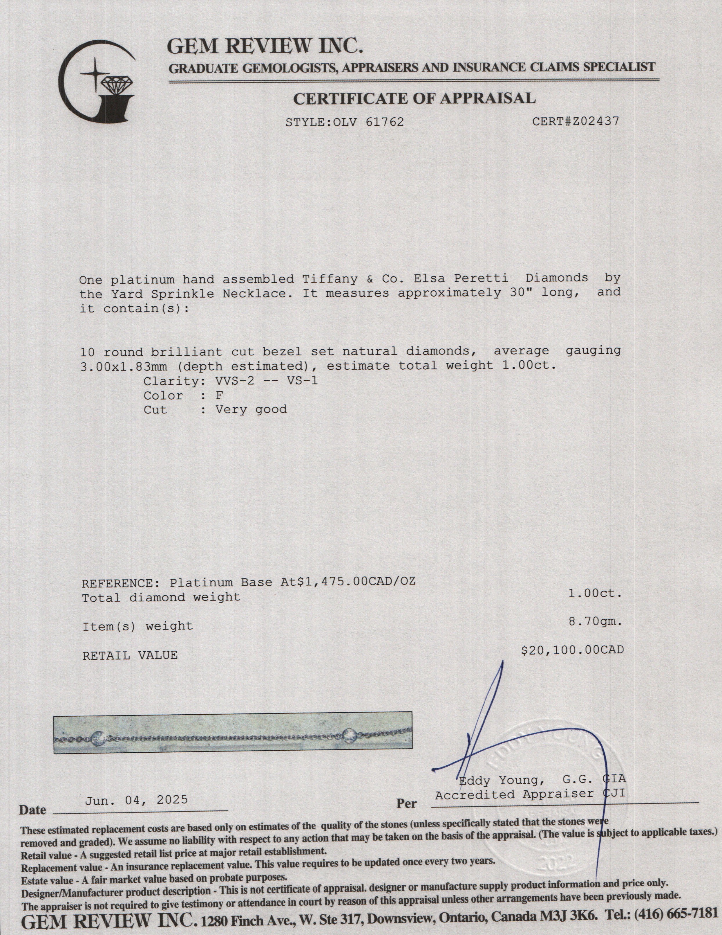 Elsa Peretti Platinum Diamonds by the Yard Sprinkle Necklace w/ Box