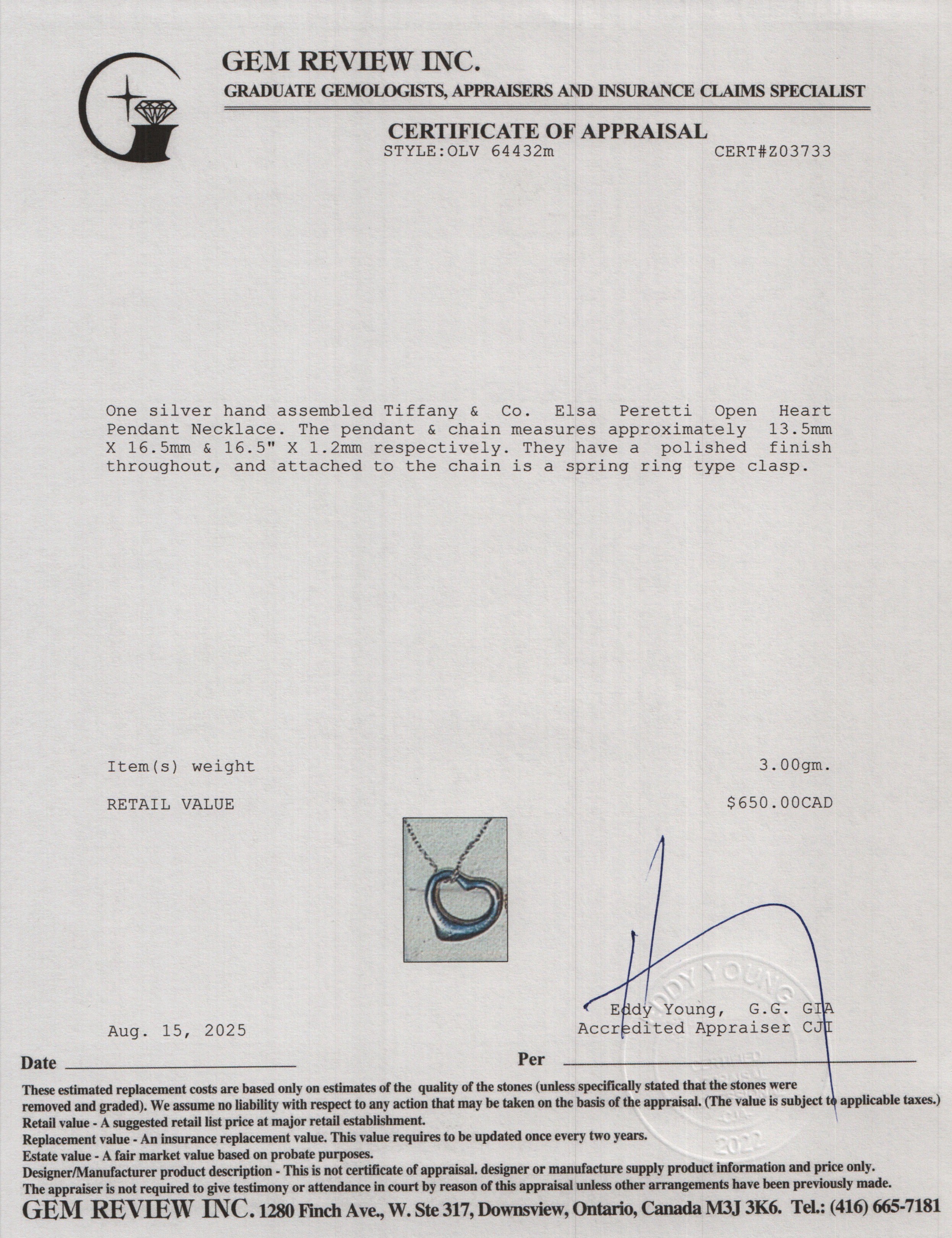 Elsa Peretti Sterling Silver 16 MM Open Heart Pendant Necklace
